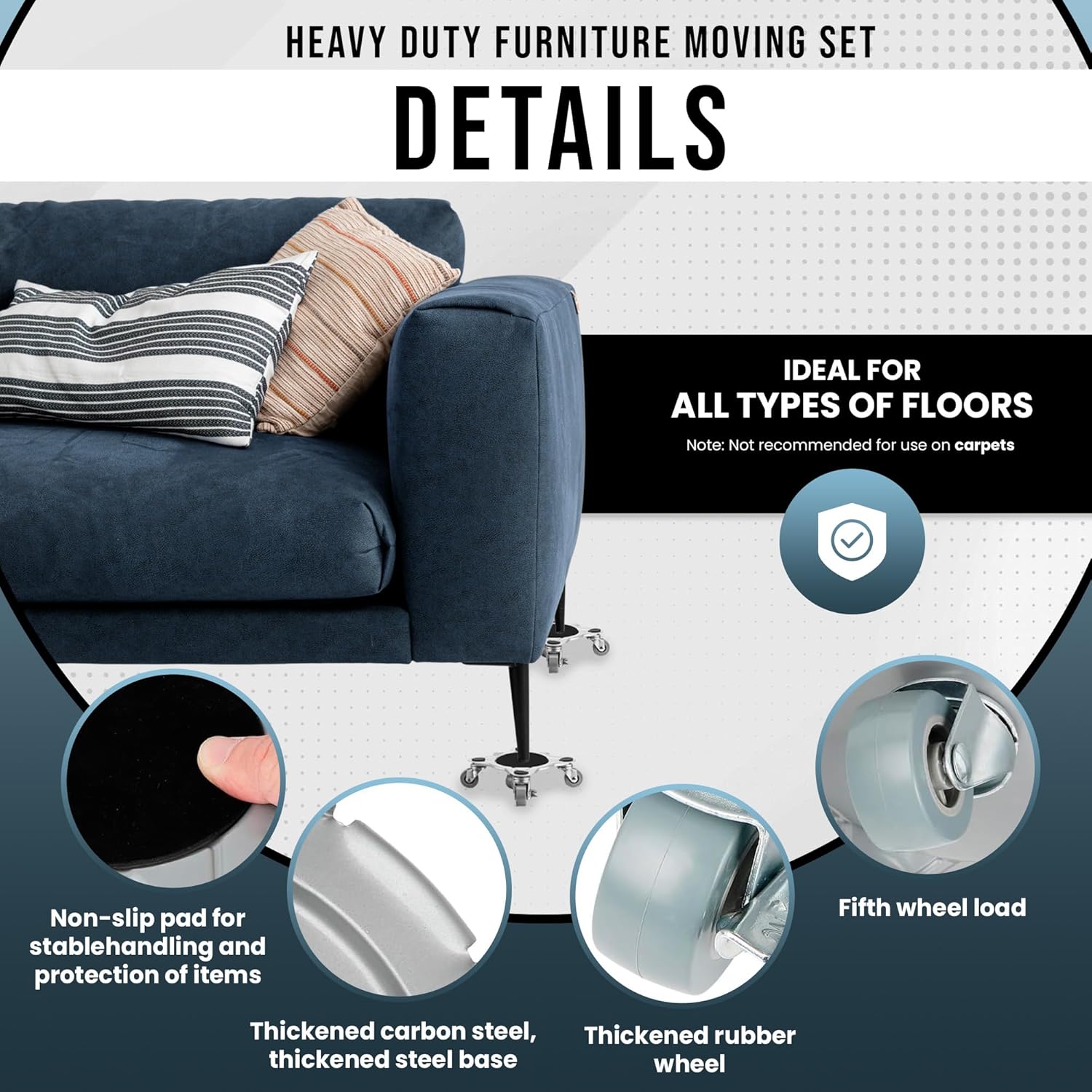 - π DURABLE CONSTRUCTION: Made from high-strength steel, this set of furniture movers is built to withstand repeated use, ideal for both residential and professional purposes.