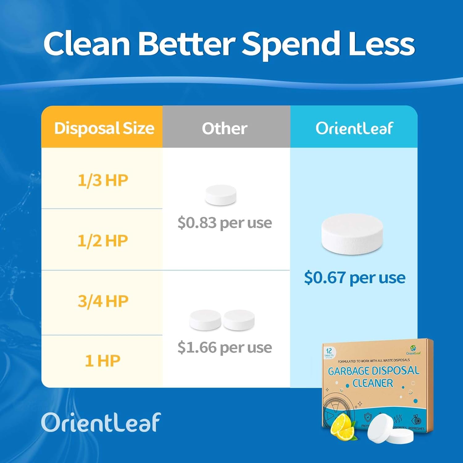 • Powerful 20g Cleaning Tablets – OrientLeaf XXL size tablets, no need to use multiple pods for one cleaning session! Each tablet is perfectly sized compatible with kitchen waste dispoal models including InSinkErator, Waste King, Moen, KitchenAid, Whirlpool, GE, Frigidaire, Emerson, Kenmore and more