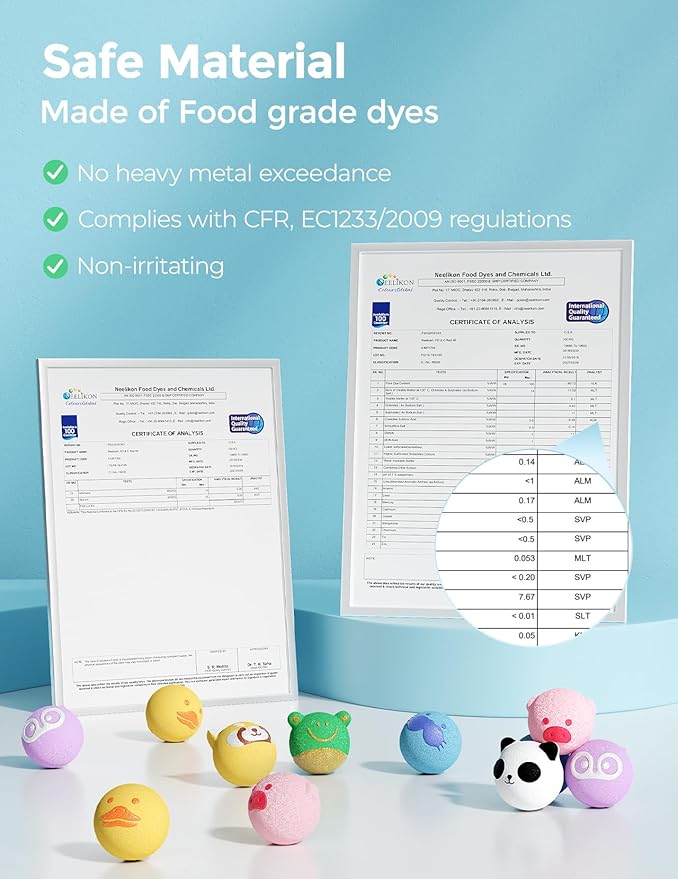 - 【Relaxing experience】Our 7 cute animal - shaped bath bombs are infused with luxurious scents that offer a unique fragrance journey from top to middle to base notes. Each bath bomb ease kids during unwell momments, turning bath time into a spa-like experience for your child. Every one is truly one-of-a-kind, delivering both fun and relaxation.