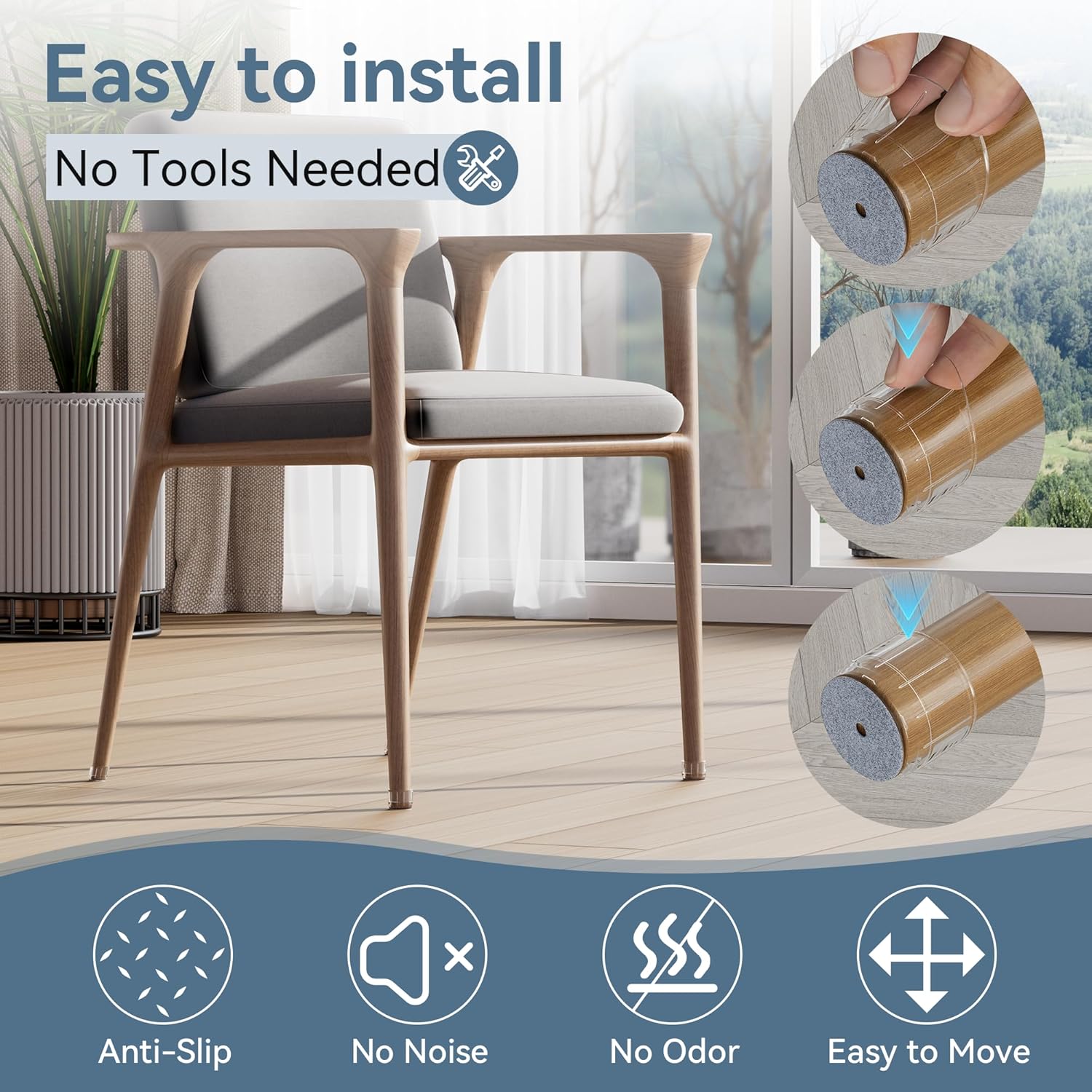 - ✅【Easy to Install】The non slip furniture slider is easy to install, without the use of tools. Just slip the chair feet protectors over your chair legs, and they’ll fit snuggly to stay in place! Much better than the felt or ones which have to be nailed on!