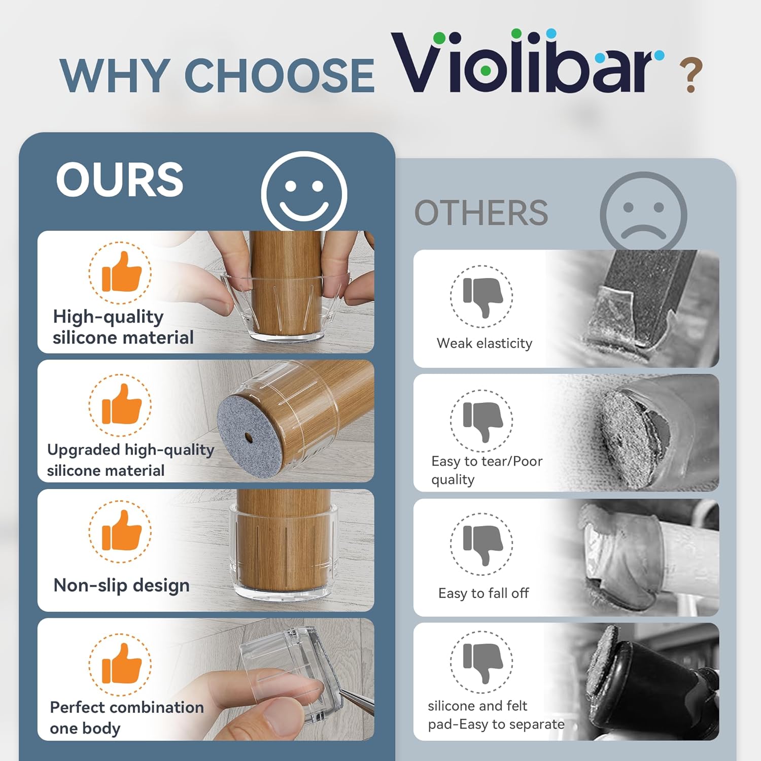 - ✅【Comprehensive Improvement】The chair leg floor protectors use special technology to combine the felt and silicone into one inseparable piece, which prevent the felt pad from falling off during use. We chose the premium quality silicone material which bonds the felt pad better, and won't tear easily when stretched.