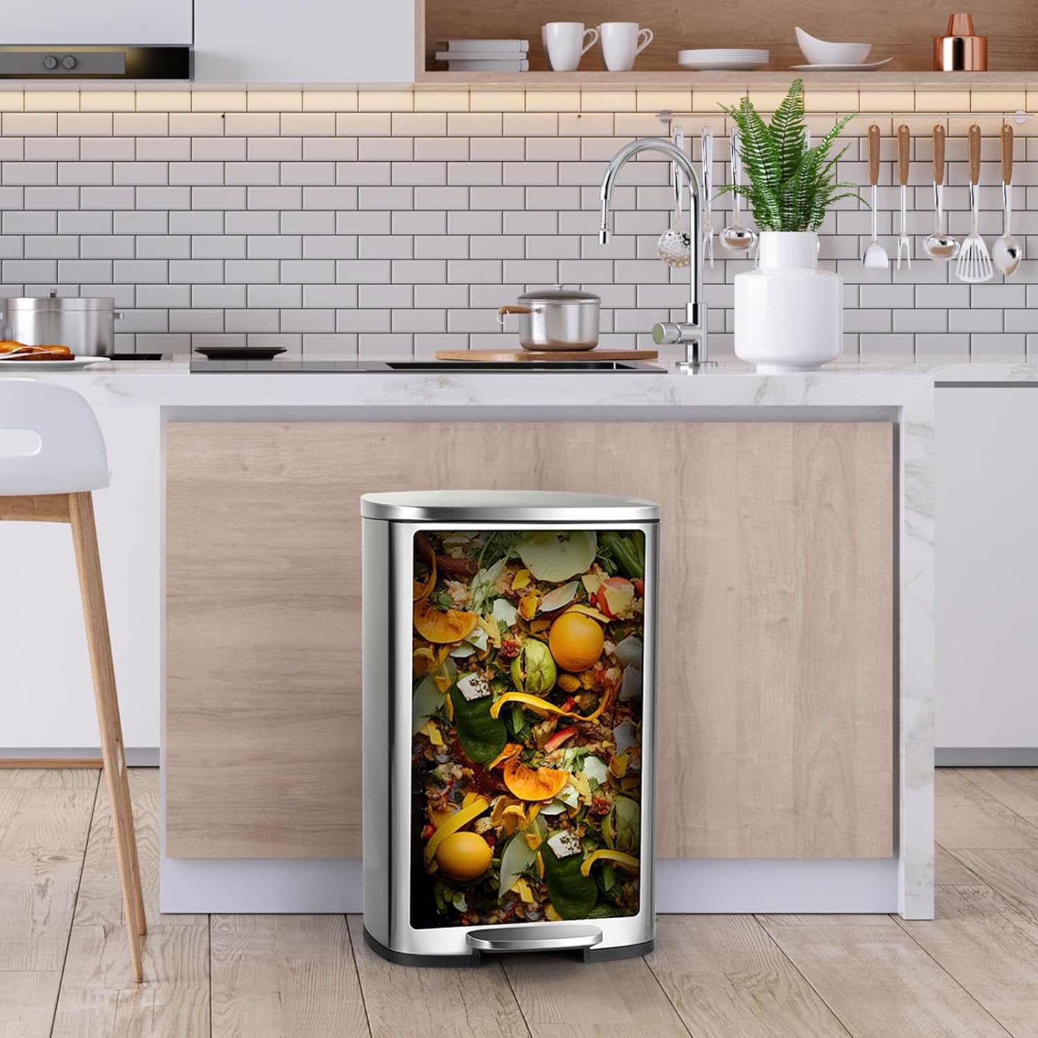 8 Gal Kitchen Trash Can, 30L Recycling or Garbage Bin, Brushed Stainless Steel Waste Basket, Soft&Quiet Close Dustbin, with Step-On Pedal, Removable Inner Bucket, for Home, Office, LIving Room