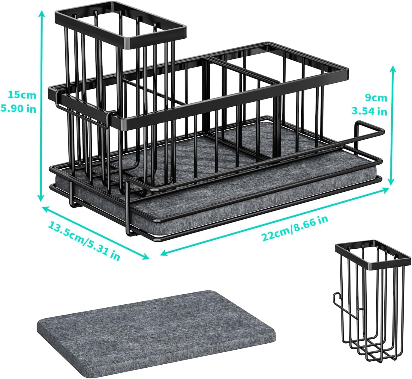 - [No Installation Required & Versatile]: Our dish brush holder doesn't need to be installed, you can place our kitchen caddy sink organizer anywhere on your kitchen countertop as needed, or any other space where you need to put things