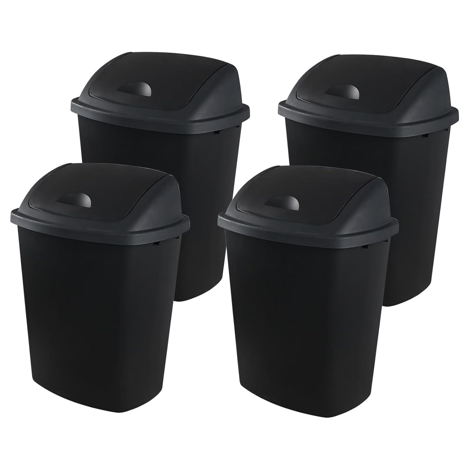 18 Gallon Plastic Garbage Bin with Swing Lid, Set of 4 Large Trash Can, Black