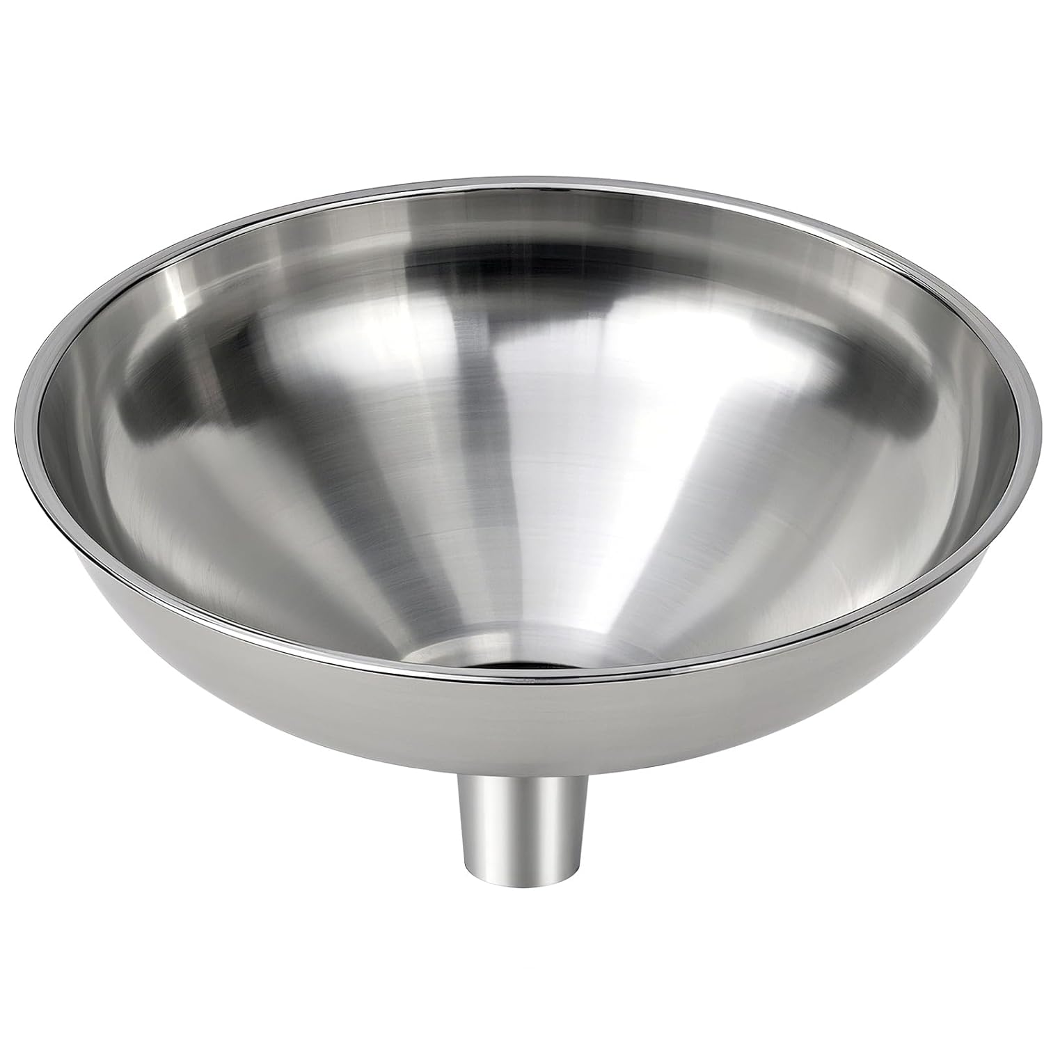 - Funnel Specifications: Metal Funnel Set (4.5"W× 2.6"H×0.5" Mouth ) Small mouth funnels can be used to transfer liquids, large mouth funnels can be used to transfer spices and powders.