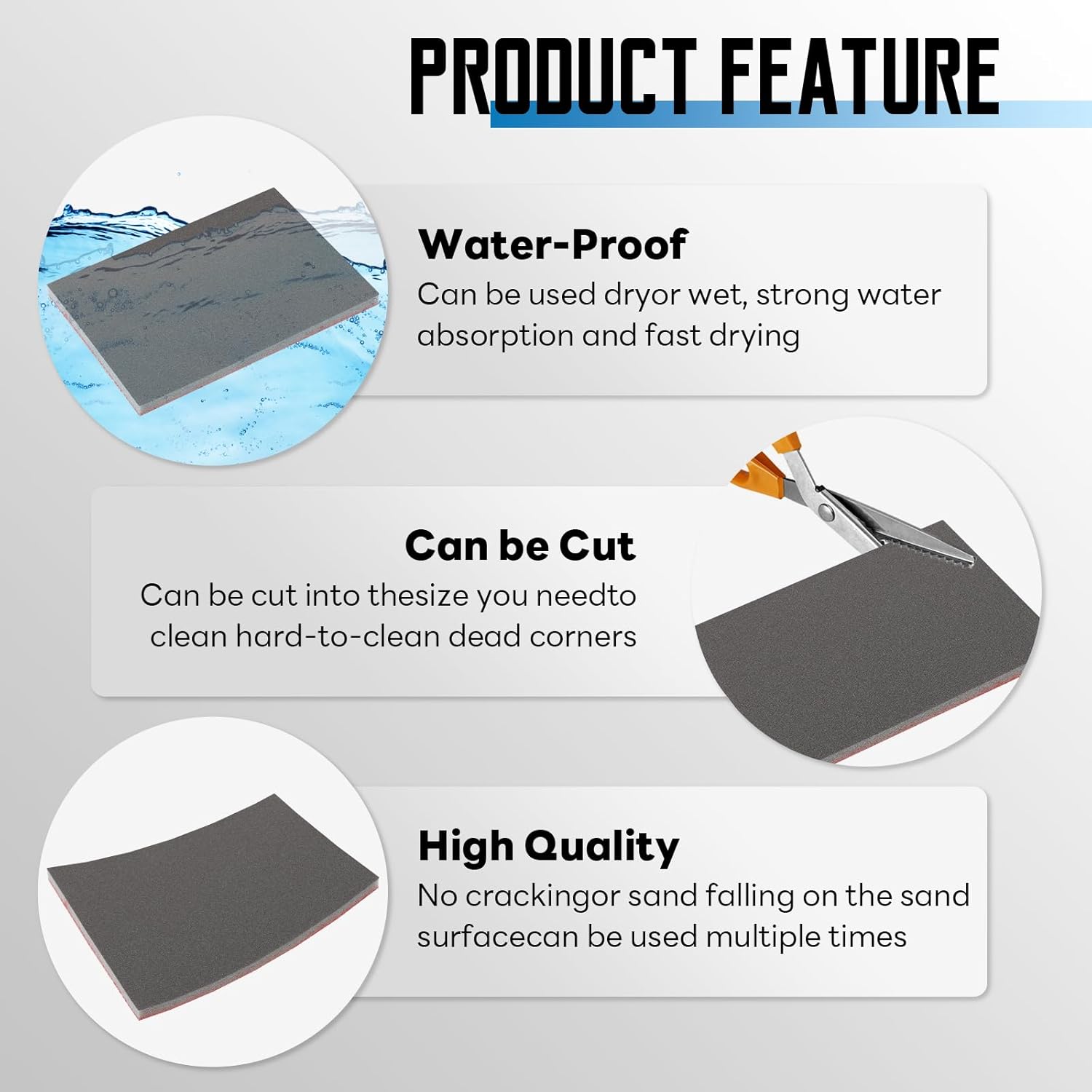 - Product Material: Foam sanding pads are made of alumina and sponge, with full sand and gravel, not easy to sand off, strong grinding force, and easy polishing.