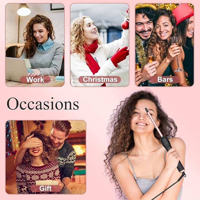 - ✅【EASY AND SAFE TO USE】Our curling iron handle is made of heat-resistant rubber material, and the innovative quick-fit design makes it easy to change the hair tube. The curling iron comes with a heat-resistant glove and heat-resistant tip to prevent burns and increase safety when styling!