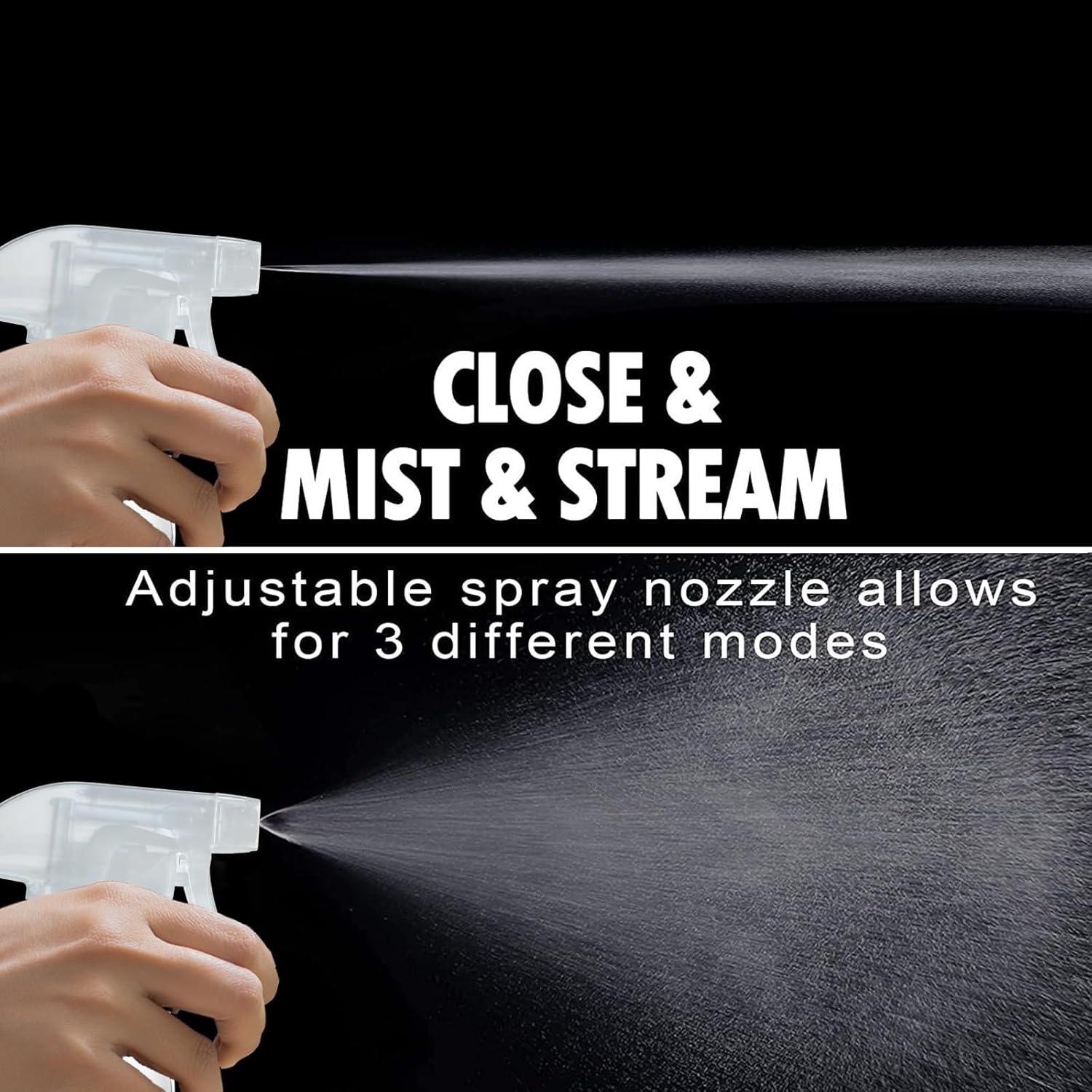 - Excellent sprayer with both stream and fine mist capabilities.The adjustable nozzle allows you to switch between a fine mist and a powerful stream, making them ideal for cleaning surfaces, applying essential oils, or misting hair.