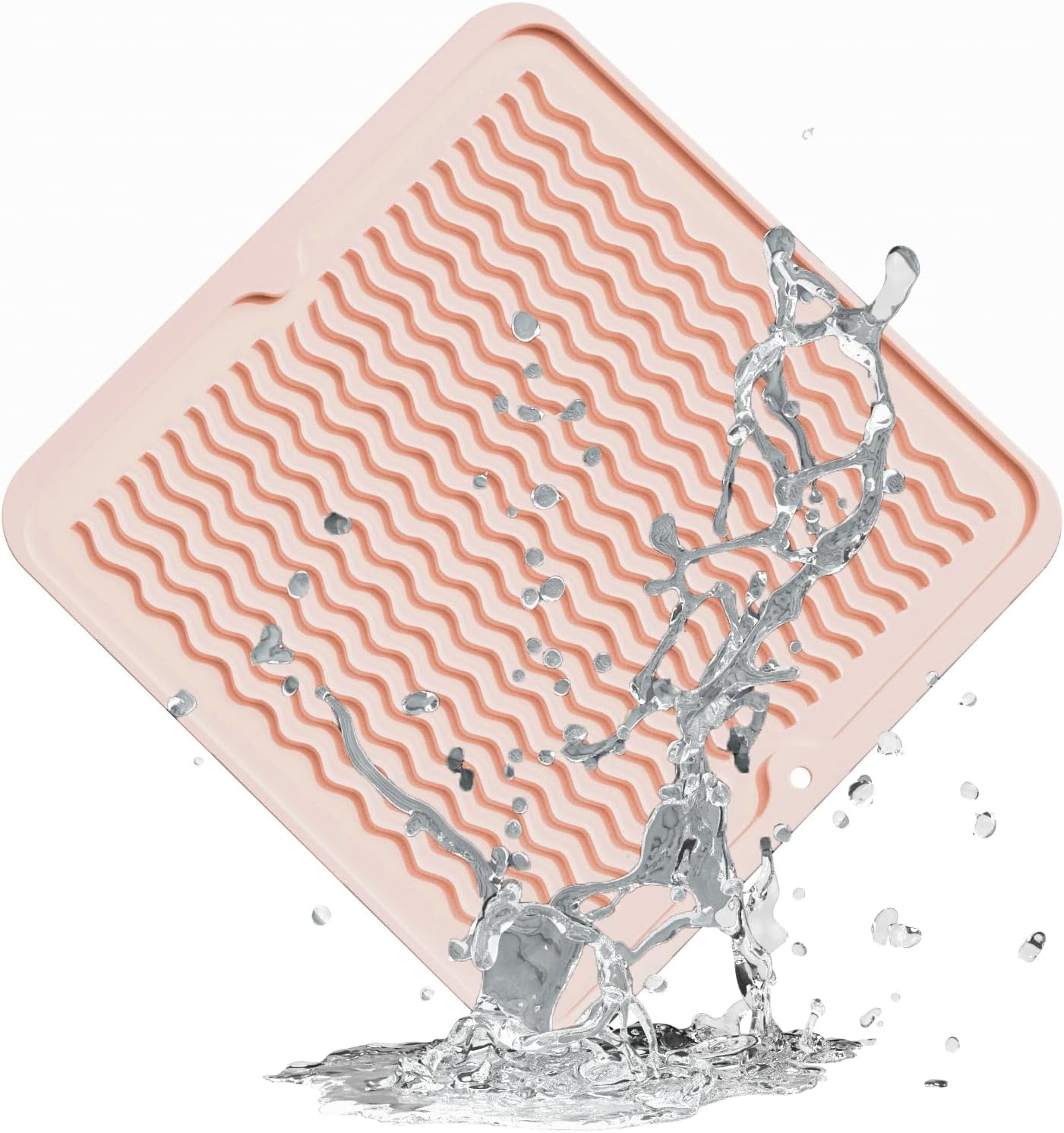 - Variety of Colors and Sizes: This drying mat is Peach Pink, and its size is 12"L x 12"W. Brighten your kitchen with our vibrant selection of colors and sizes. Whether you prefer classic neutrals or bold hues, find the perfect dish drying mat to fit your countertop and style.