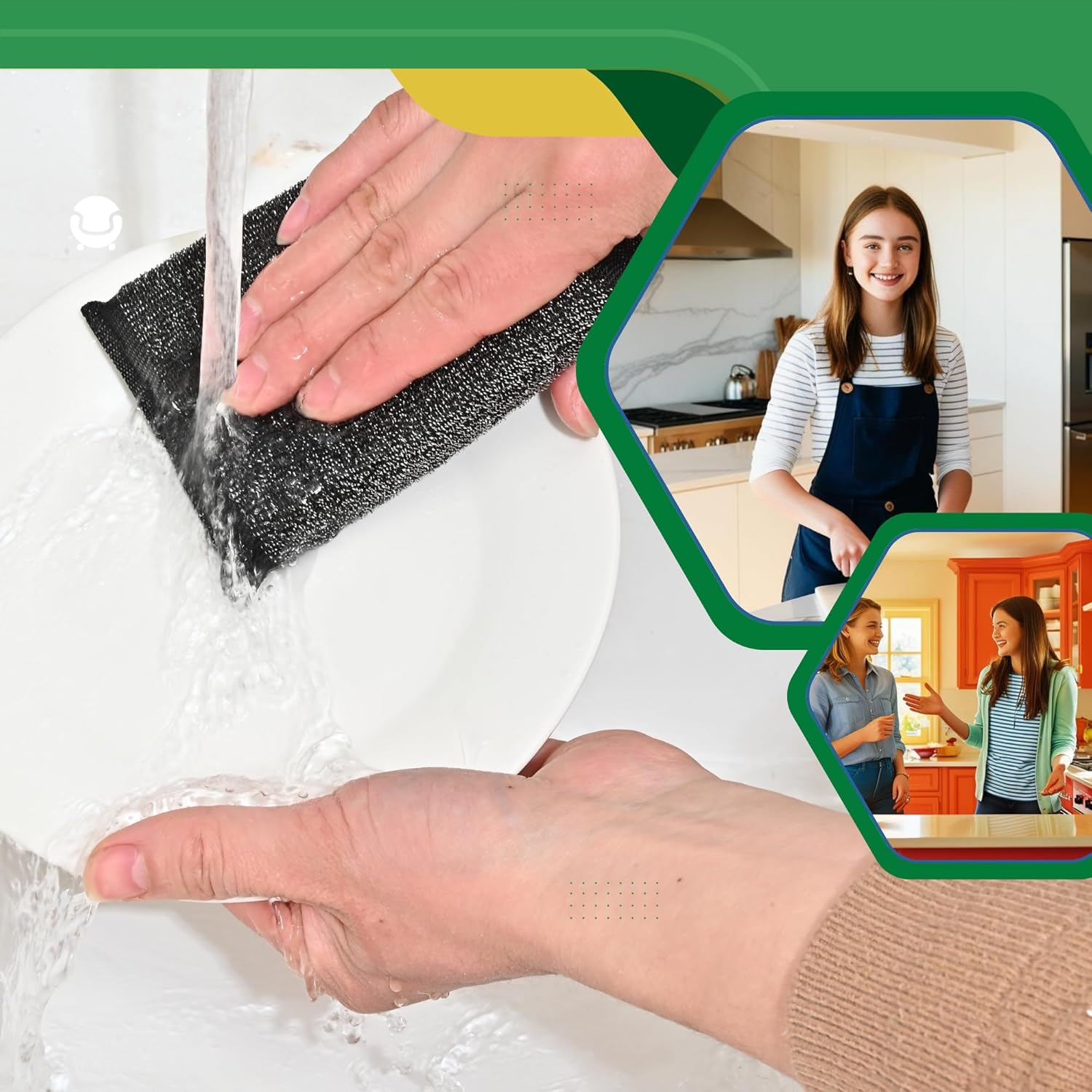 Steel Wool Scrub Sponges Kitchen, Reusable Dish Scrubber Sponge, for Pots, Pans, Gentle and Scratch Free - 6 Pack Black