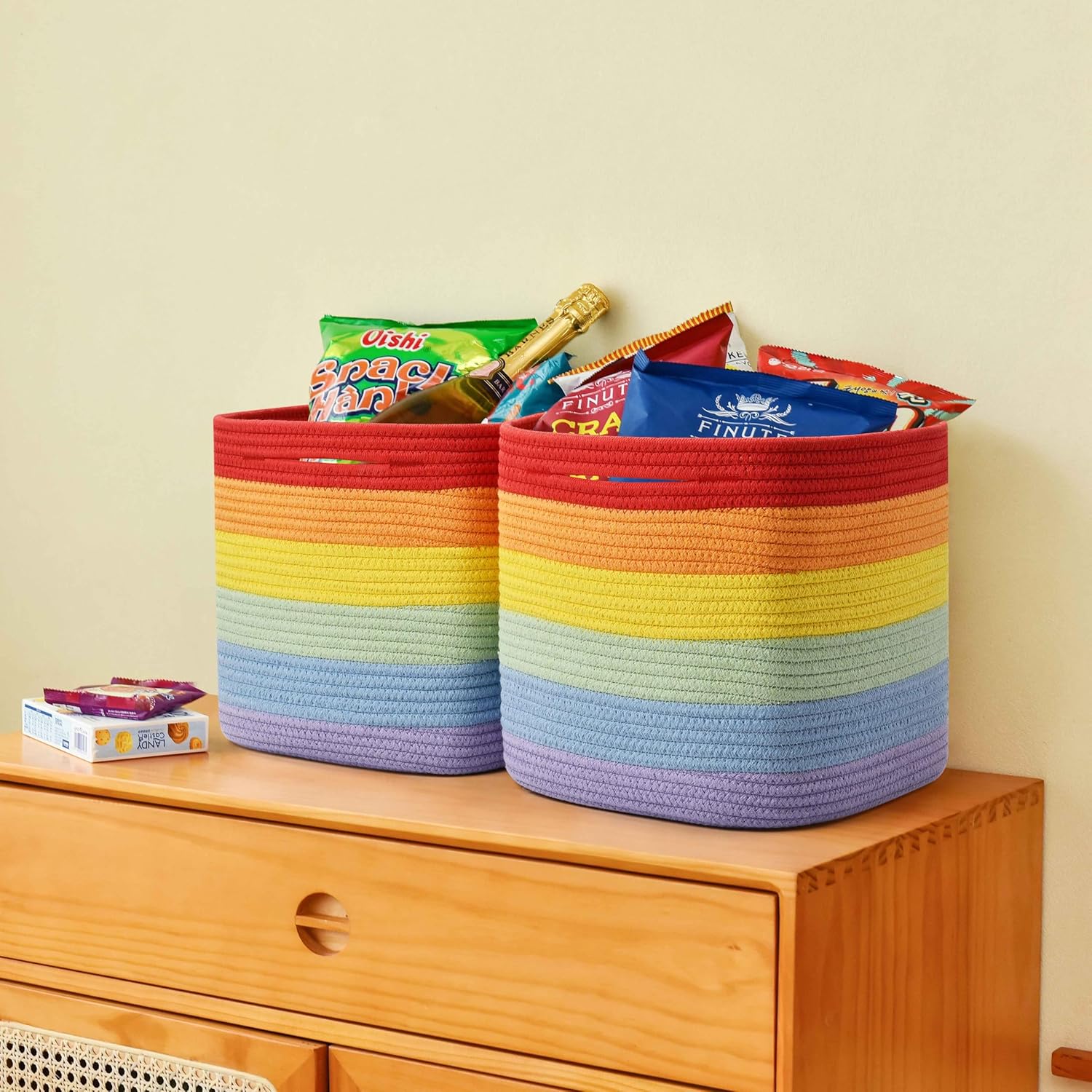 3 Pack Storage Cubes 11 Inch Cotton Rope Woven Baskets for Organizing Cube Bin Square Shelves Organizer,Classroom,Kids Toy Bins,Closet,Baby Nursery(Rainbow)