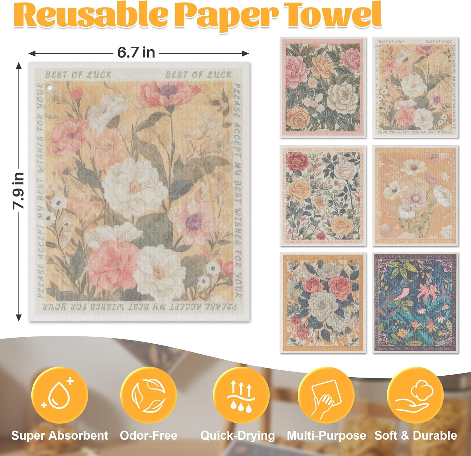 JOYMOOP 6 Pack Dishcloths for Kitchen, Reusable Absorbent Non-Scratch Cleaning Cloths, Washable Quick-Drying Rags for Cookware and Household, 6.7Ć7.9 Inch