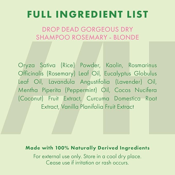 Handmade Heroes Dry Shampoo with Rosemary Oil for Hair Growth Healthier Looking Hair Volumizing Non Aerosol Drop Dead Gorgeous Dry Shampoo Rosemary 1.8oz (Light to Medium 1pc)