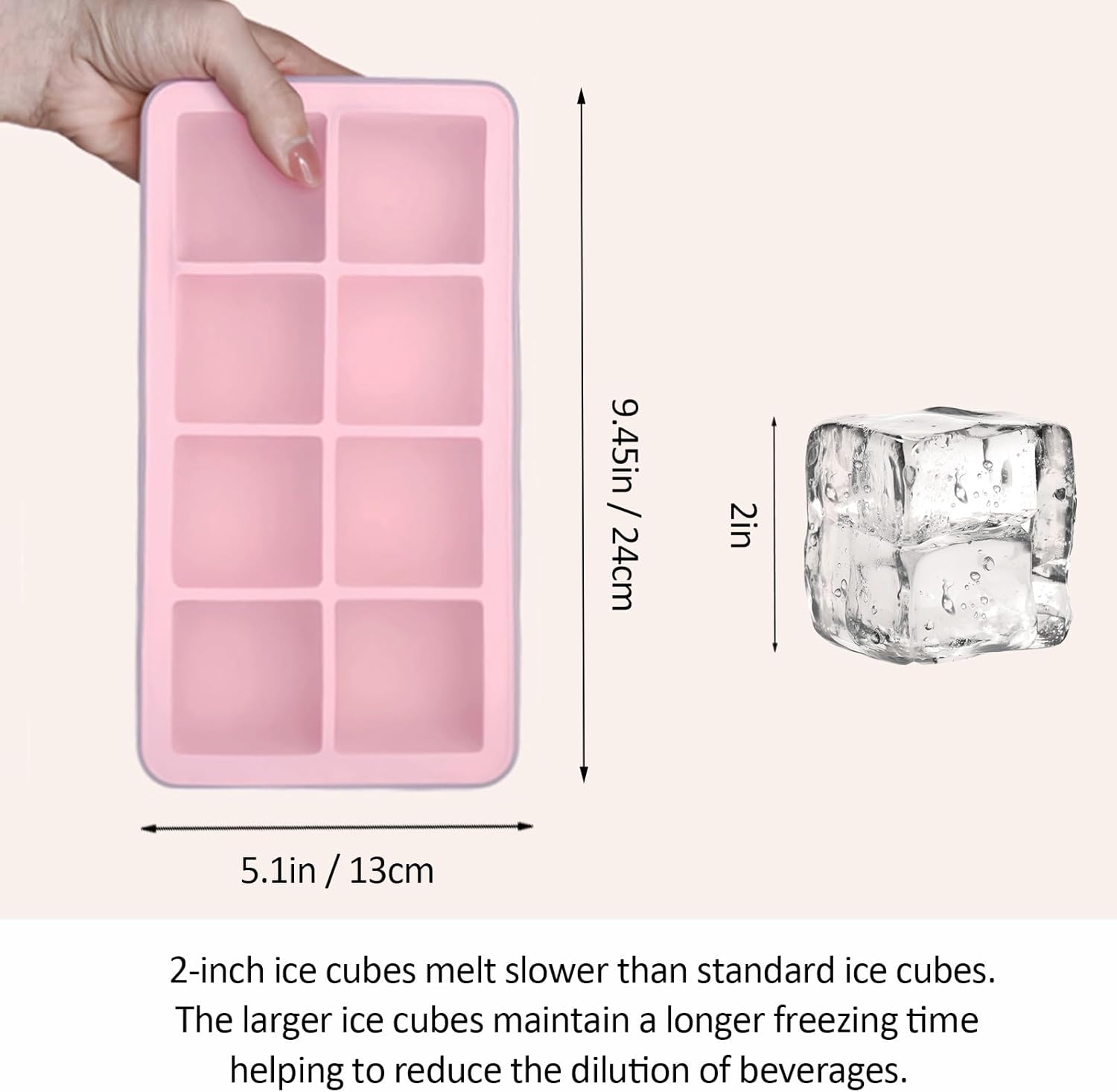 2 Pack Silicone 2 Inch Large Ice Cube Molds for Cocktails Wine Fruit and Bourbon Whiskey Easy Release Ice Cube Tray with Lid Ideal for Cold Drinks and Entertaining Gatherings (Strawberry Pink)