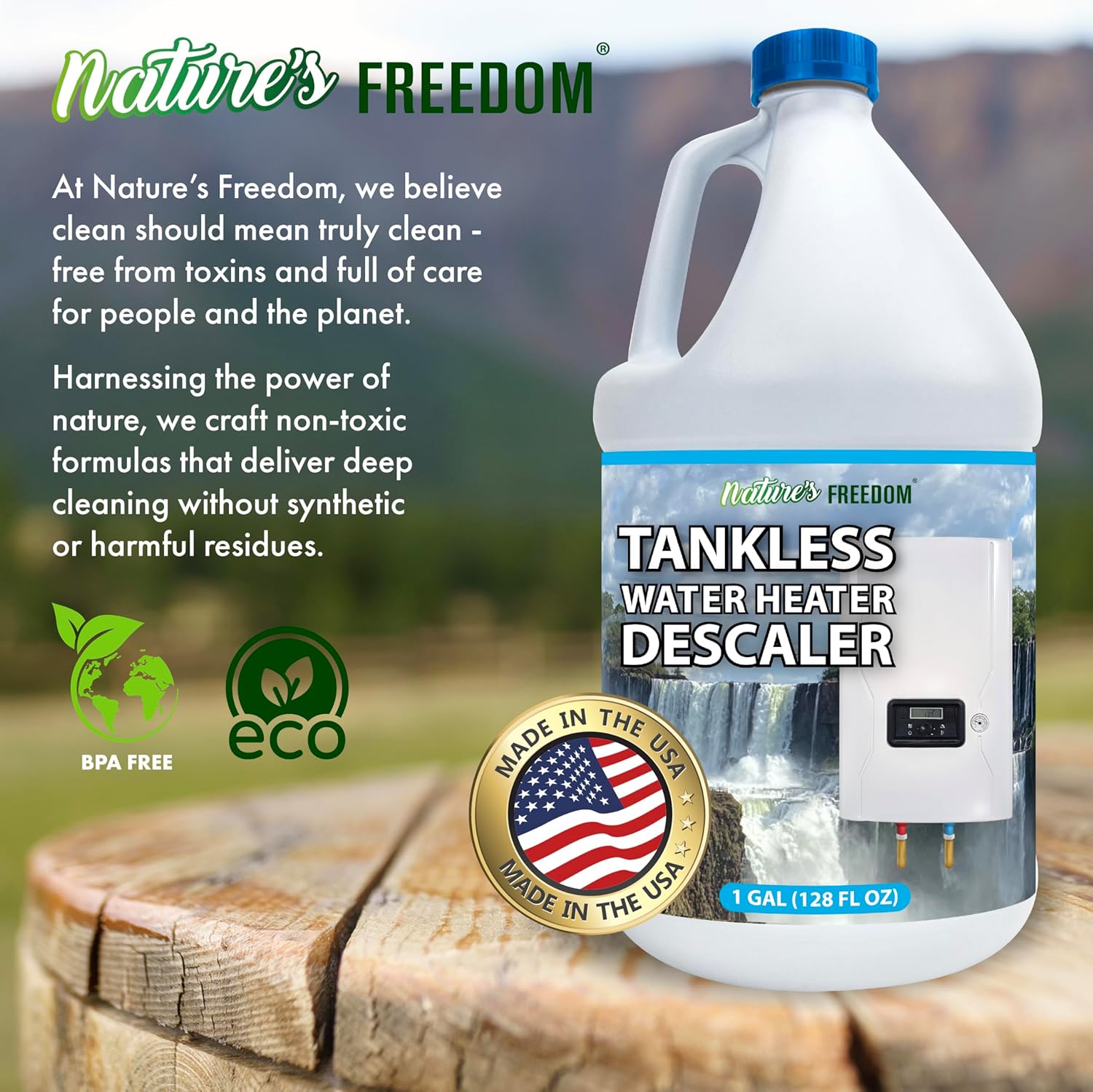 Nature's Freedom Tankless Water Heater Flush Descaler, Gallon (128 oz) – Professional Non-Toxic Descaling Solution, Biodegradable, Made in the USA