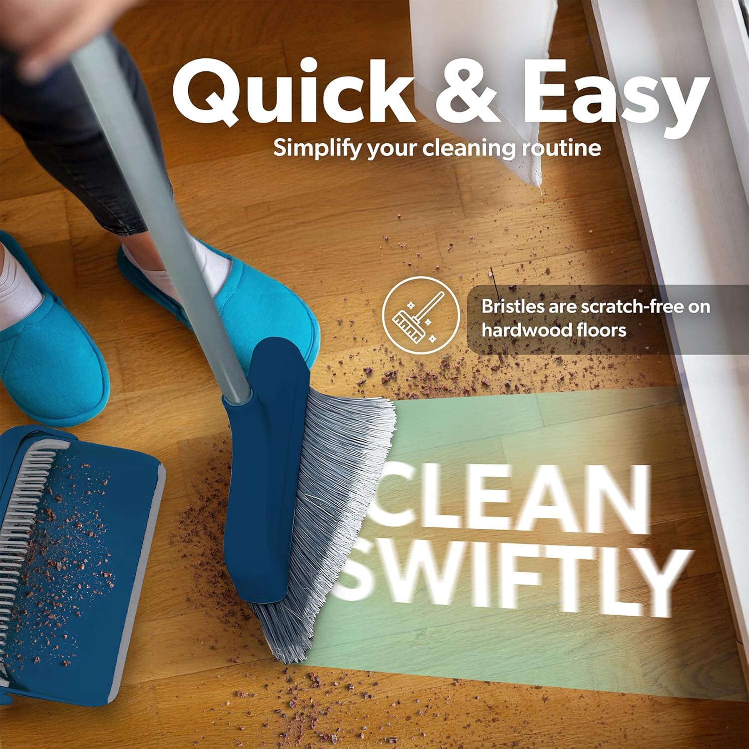 • Self Cleaning Comb Design - Sturdy teeth at the top of the dustpan comb the broom, when it collects hair/dust/lint which usually gets tangled into the bristles. Otherwise, you would need to remove them manually - not the most pleasant experience. The dustpan has a rubber lip and seamlessly sticks to the floor. It picks up everything, including the smallest particles, in the first swoop, so you will finally spend less time cleaning - more time living!