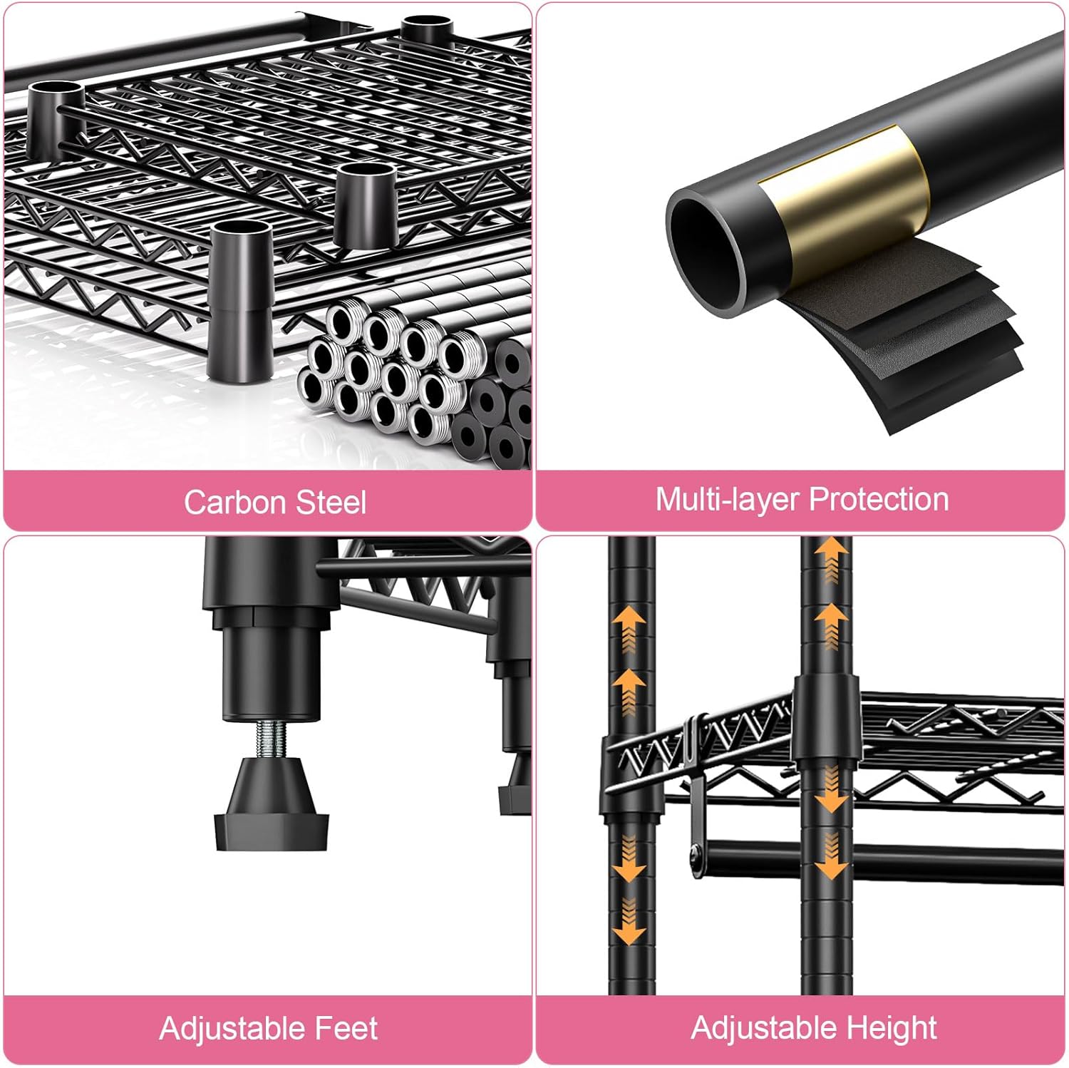 - Heavy-Duty and Reliable Support : With a strong weight capacity of up to 750 lbs when stationary, this rack provides a stable and secure storage solution for both lightweight and bulky items
