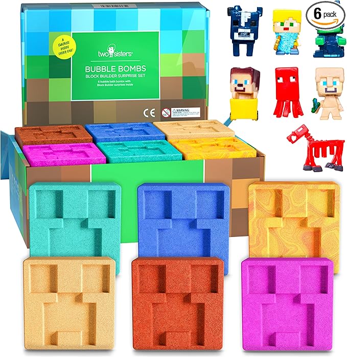 - [Epic Fizzy Fun + Surprise Inside] Watch each bath bomb bubble and swirl for 5–8 minutes, revealing a surprise figure inside! These blocky bath squishy make every soak an exciting treasure hunt and imaginative playtime.
