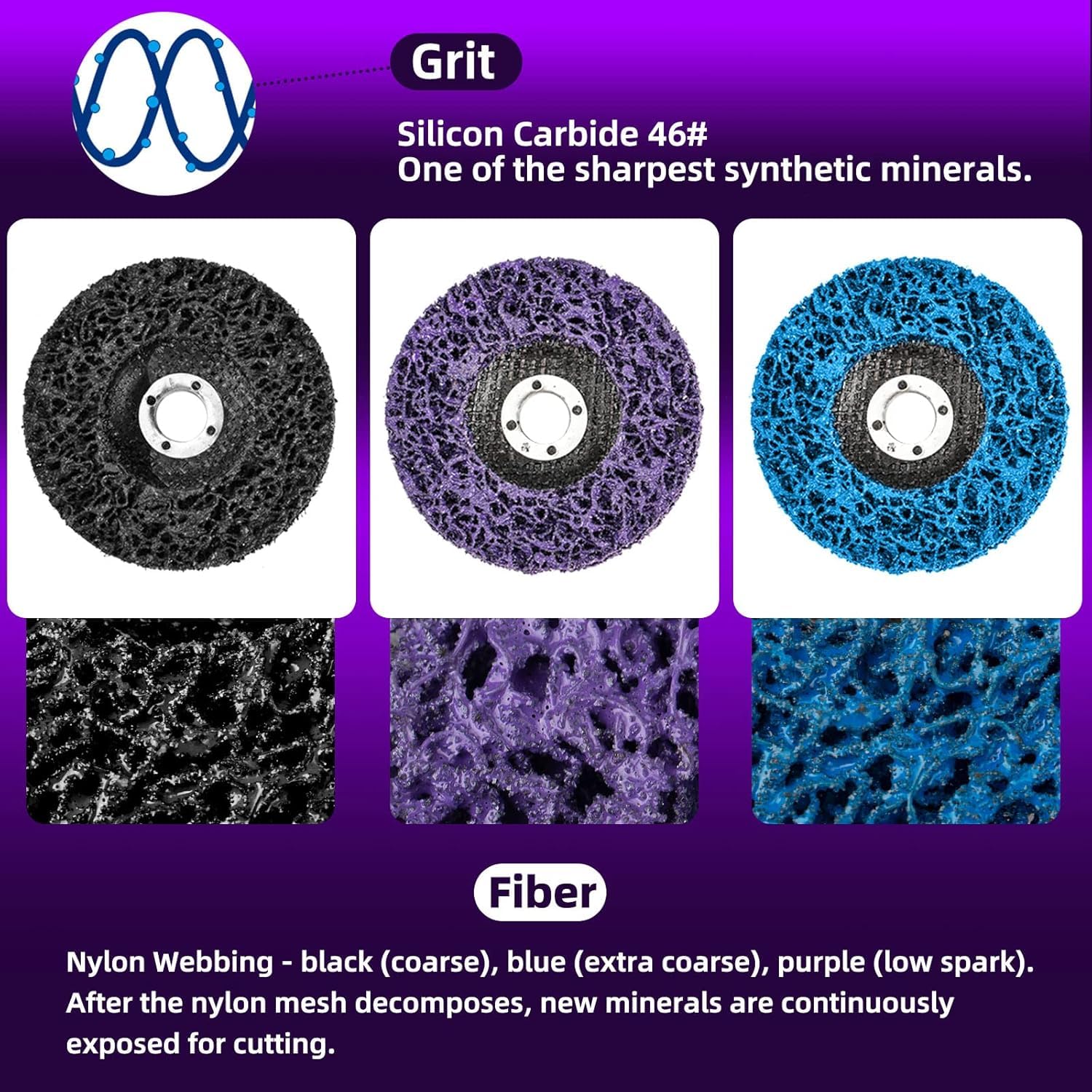 - 【DIFFERENCE BETWEEN COLORS】Black is the basic style suitable for ordinary paint and rust removal. Blue and purple raw materials are harder and wear-resistant and are ideal for more stubborn old paint and hard rust. In terms of efficiency, blue and purple are better.