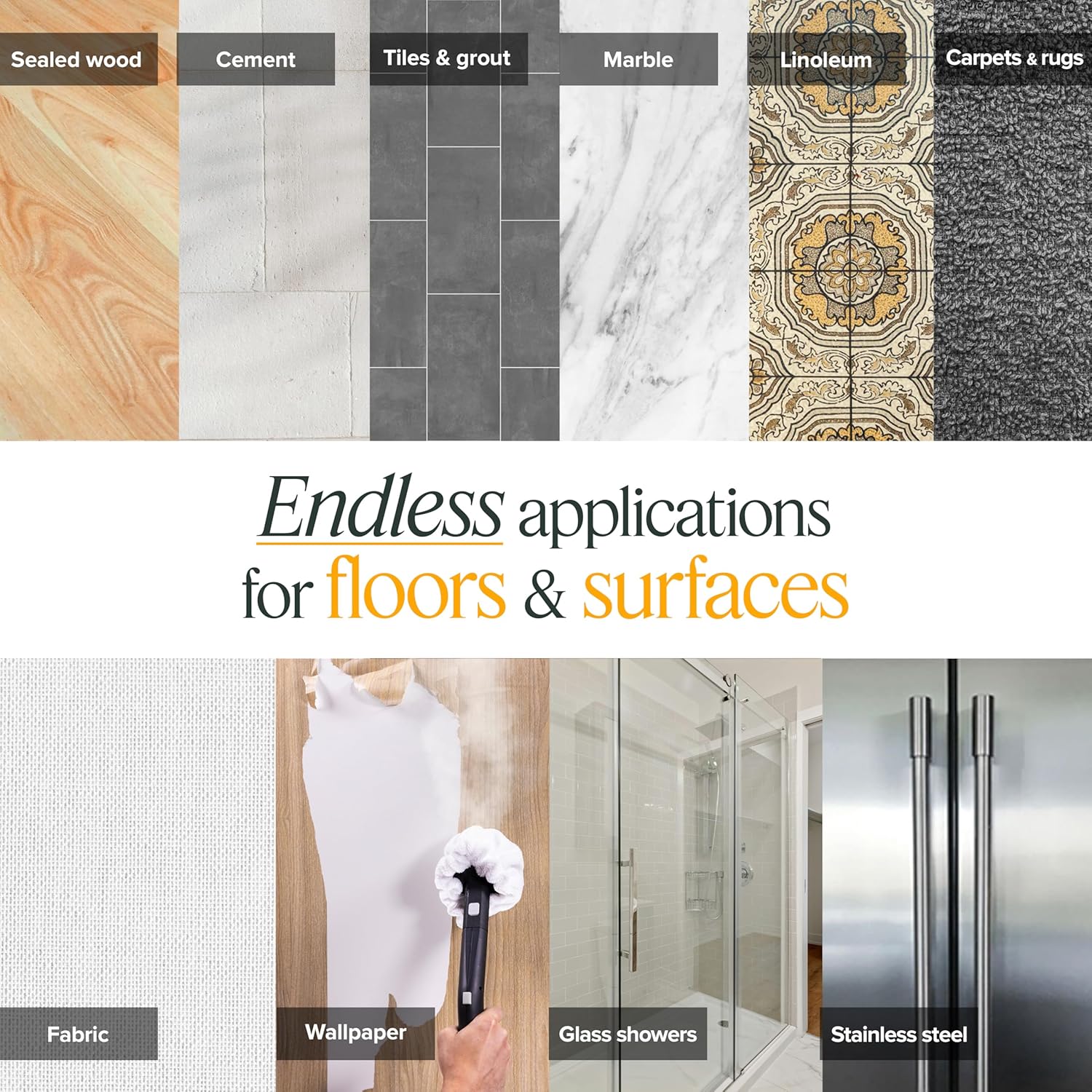 • 𝗣𝗼𝘄𝗲𝗿𝗳𝘂𝗹 𝗖𝗵𝗲𝗺𝗶𝗰𝗮𝗹-𝗙𝗿𝗲𝗲 𝗖𝗹𝗲𝗮𝗻𝗶𝗻𝗴: Generates superheated steam to break down stubborn dirt, grease, and grime effortlessly, delivering chemical-free deep cleaning on a variety of surfaces. Clean. Sanitize. Refresh. Detail. Deodorize. Multiple surfaces, naturally