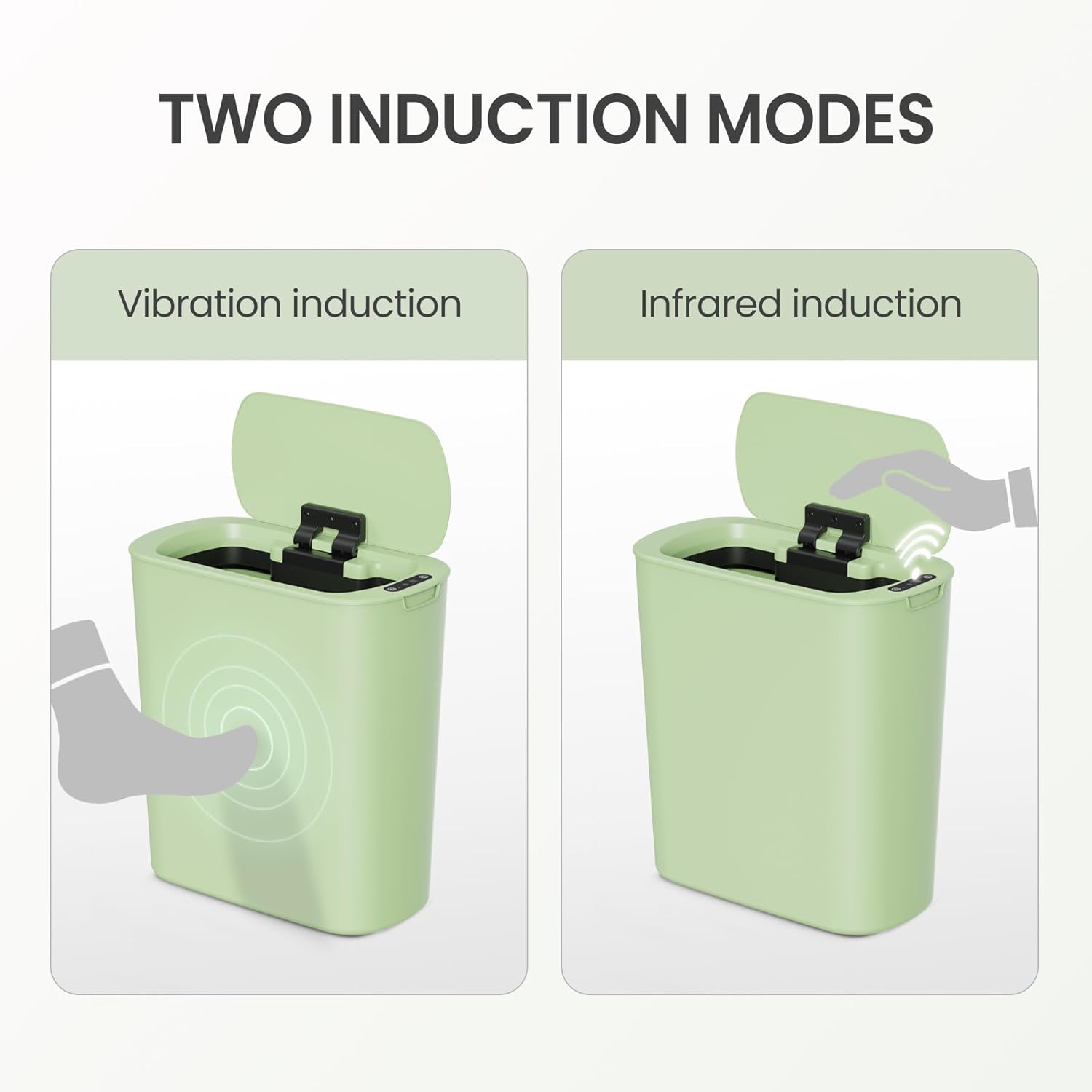 Cesun Motion Sensor Trash Can, 5 Gallon Automatic Bathroom Garbage Can with Lid, Touchless Smart Plastic Slim Wastebasket for Bathroom, Office, rv, Bedroom, Living Room, Green