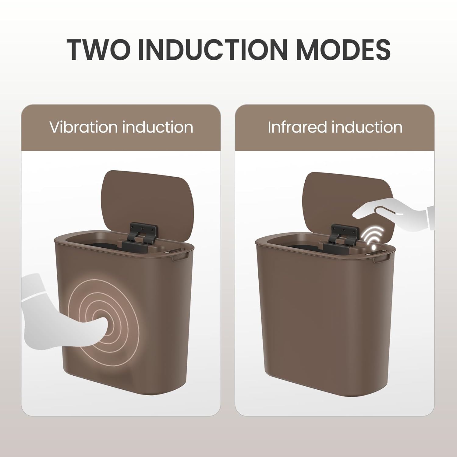Cesun Automatic Motion Sensor Bathroom Trash Can with Lid, 2.6 Gallon Touchless Trash Bin, Smart Plastic Slim Garbage Can Small Brown Wastebasket for Toilet, Office, rv, Bedroom, Living Room
