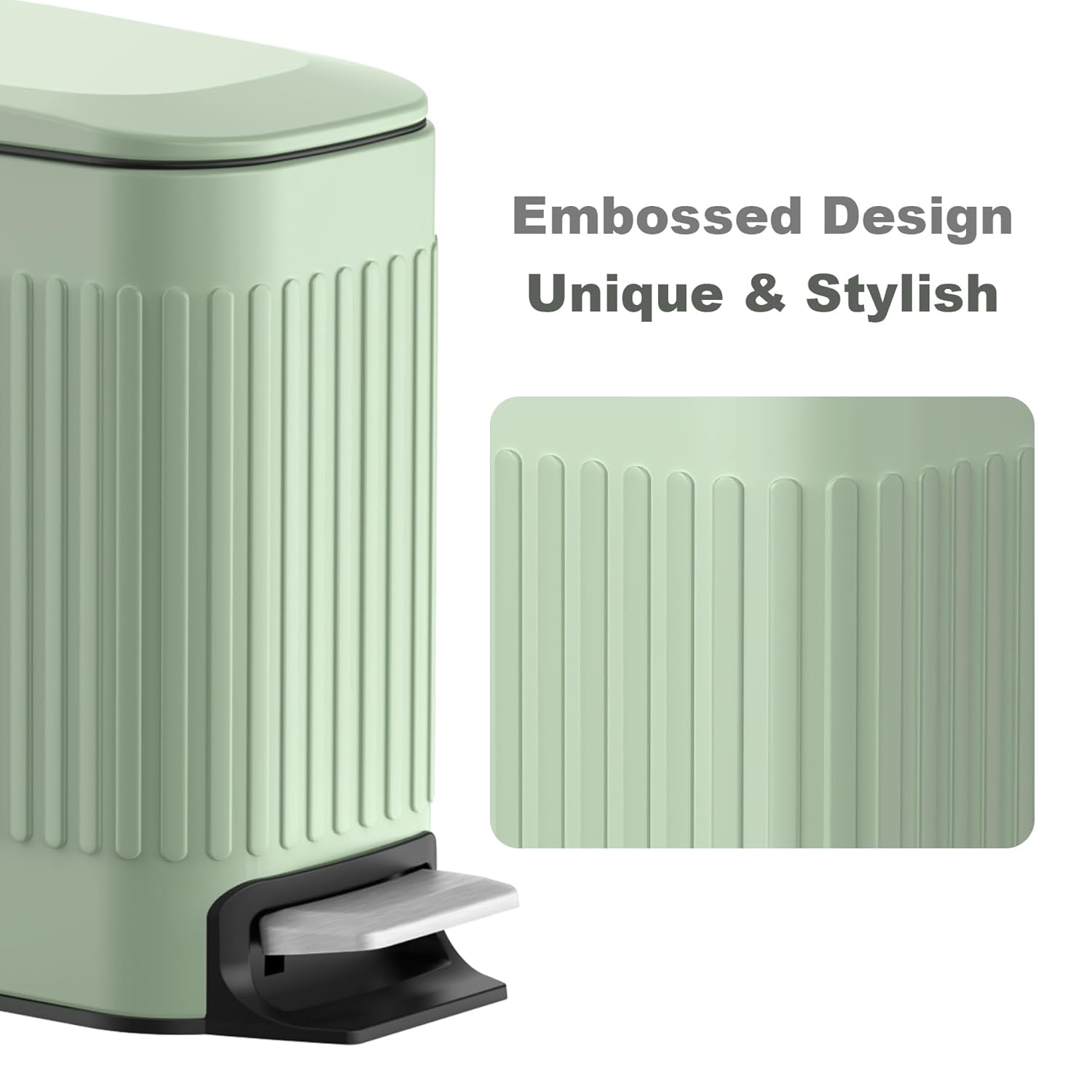 - Embossed Metal Finish: The small garbage can is made of thickened grade stainless steel. The unique embossed design makes the garbage can have a retro and elegant appearance, which is attractive and decorative while being practical