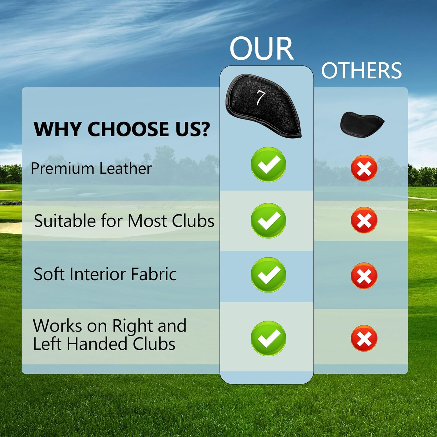 - Easy to Use: Our iron covers for golf clubs use velcro closure allows for easy access to your clubs, while the soft iron covers interior lining prevents scratches and damage to the clubheads.