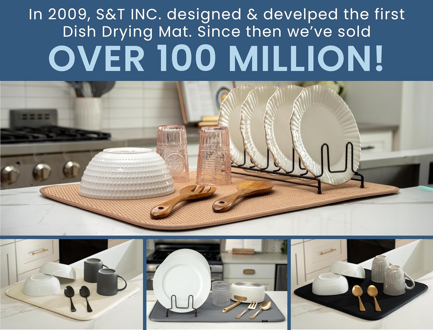 - One S&T INC. Microfiber Dish Dry Mat measuring 16 in. x 18 in.; kitchen mat for countertop absorbs up to 4 times its weight in water to keep your countertop dry, unlike a silicone dish drying mat