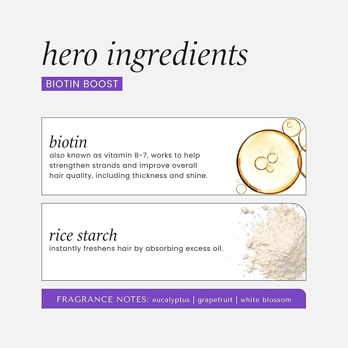 HASK Biotin Boost Thickening Dry Shampoo – Absorbs Oil, Adds Volume & Lift, Strengthens Strands, No Sulfates or Parabens, Cruelty-Free – 8.1oz