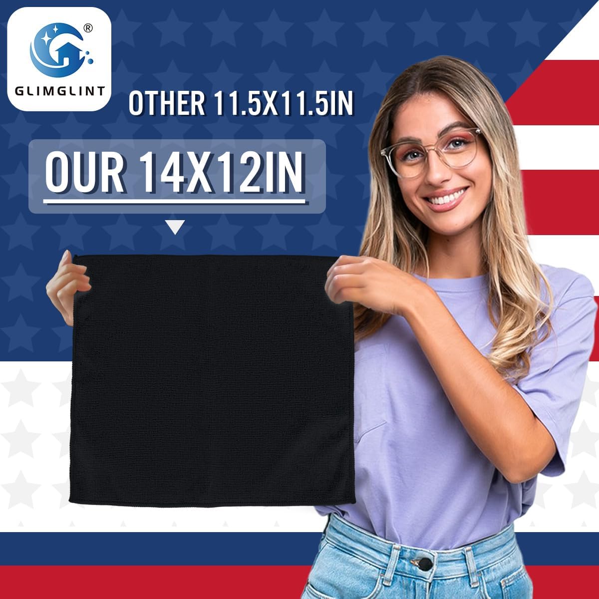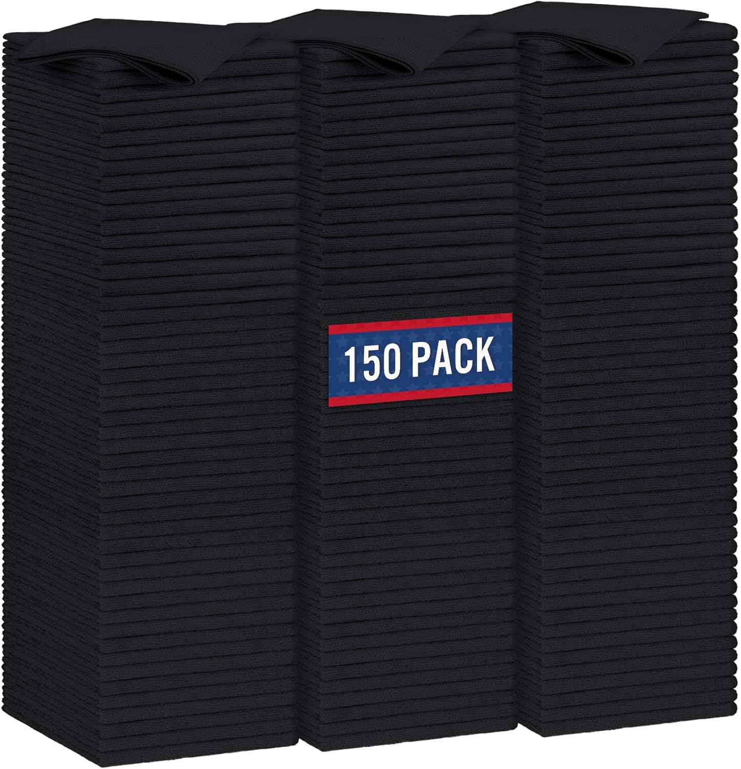 GLIMGLINT Black Microfiber Cleaning Cloth, 150 Pack Microfiber Towels for Cars, Lint Free, Scratch-Free, Highly Absorbent, Reusable Cleaning Rags for Car, Household, Shop Towels 14"X12"