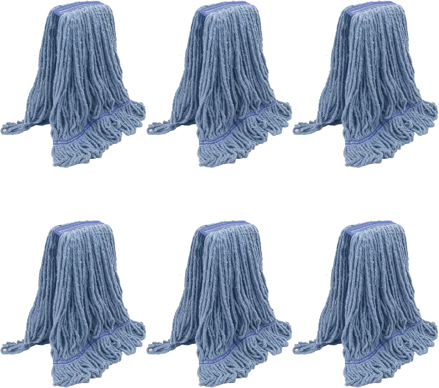 KeFanta 6 Pack Heavy Duty Commercial Mop Head Replacement,Wet Industrial Cotton Looped End String Mops Refill for Floor Cleaning,Blue