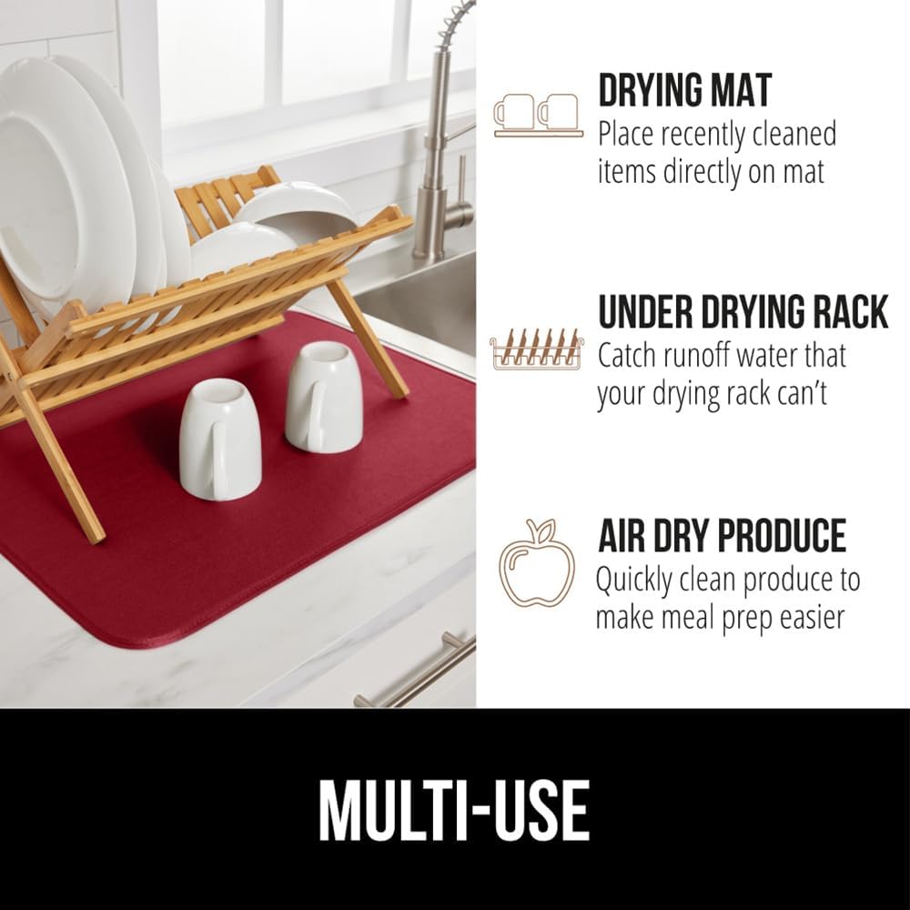GORILLA GRIP Ultra Water Absorbent Microfiber Dish Drying Mat, 18x24, Quick Dry Thick Mesh, Slip Resistant Pad for Sink Dishes or Under Rack, Kitchen Counter Accessories, Machine Wash, 2 Pack Red