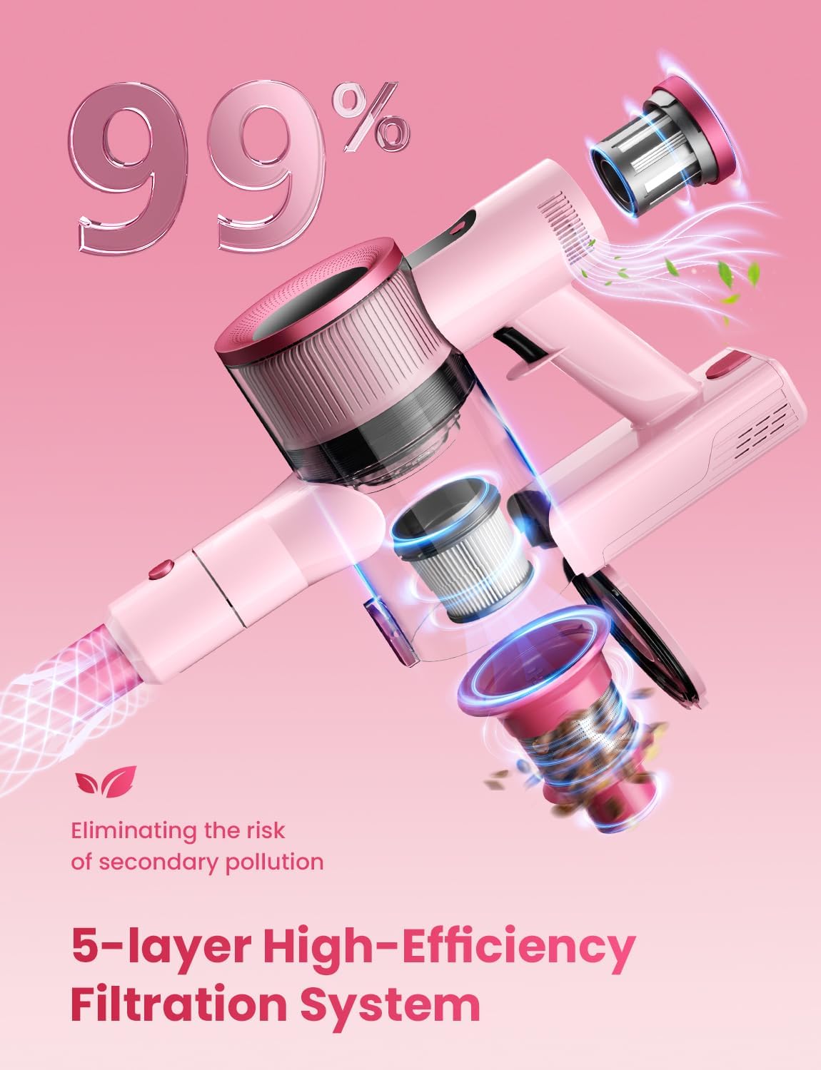 - ๐ฑ0๐๐ฃ๐ฎ ๐ฃ๐ผ๐๐ฒ๐ฟ๐ณ๐๐น ๐ฆ๐๐ฐ๐๐ถ๐ผ๐ป ๐ณ๐ผ๐ฟ ๐๐ฒ๐ฒ๐ฝ ๐๐น๐ฒ๐ฎ๐ป๐ถ๐ป๐ด: Tackle dirt, dust, and pet hair with ease using the 350W brushless motor that delivers up to 50,000Pa of suction. This cordless stick vacuum cleaner works great on hardwood floors, carpets, tile, and moreโperfect for whole-home cleaning.