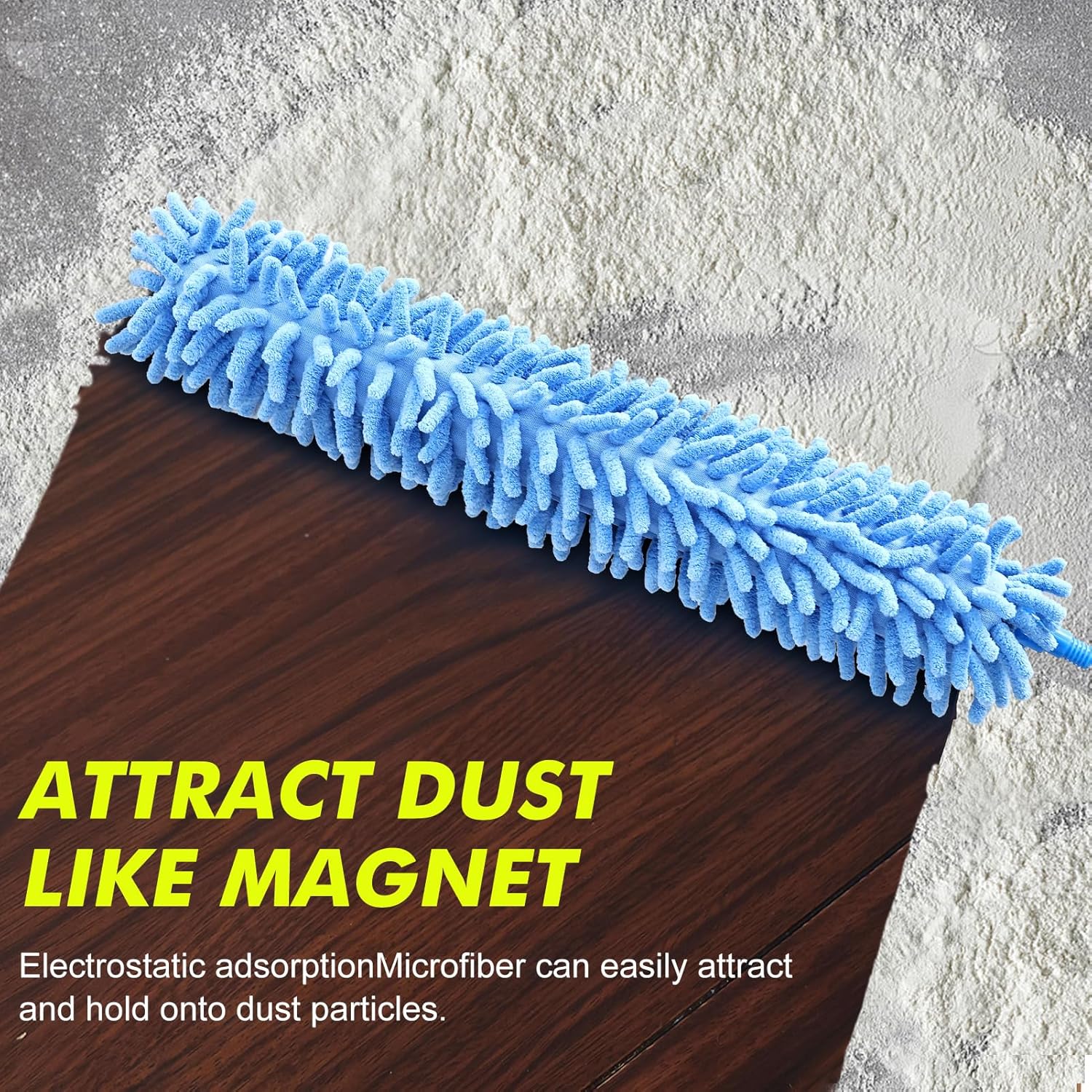 - Microfiber Dusting Head:The furniture dusters head are made of high quality fluffy microfiber with strong static electricity adsorption to clean without raising dust. Just gently wipe furniture and other items and the static electricity will attract dust like a magnet.