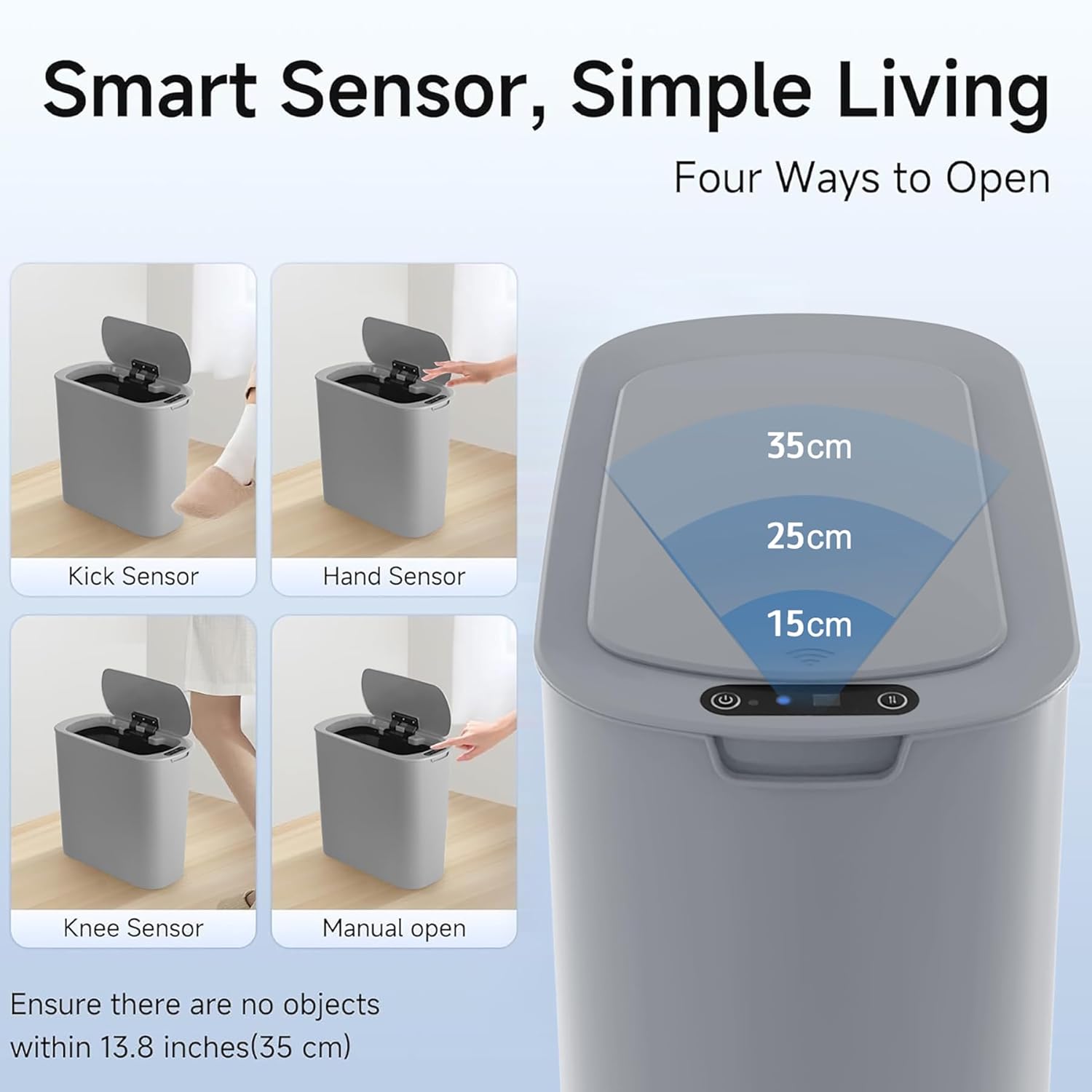 - 【Touchless Trash Can】Adopts advanced infrared technology. The lid opens when your hand or any object is detected in the sensing area, eliminating the need for direct contact, particularly beneficial for individuals with mobility challenges. Requires 2 AA batteries (not included)