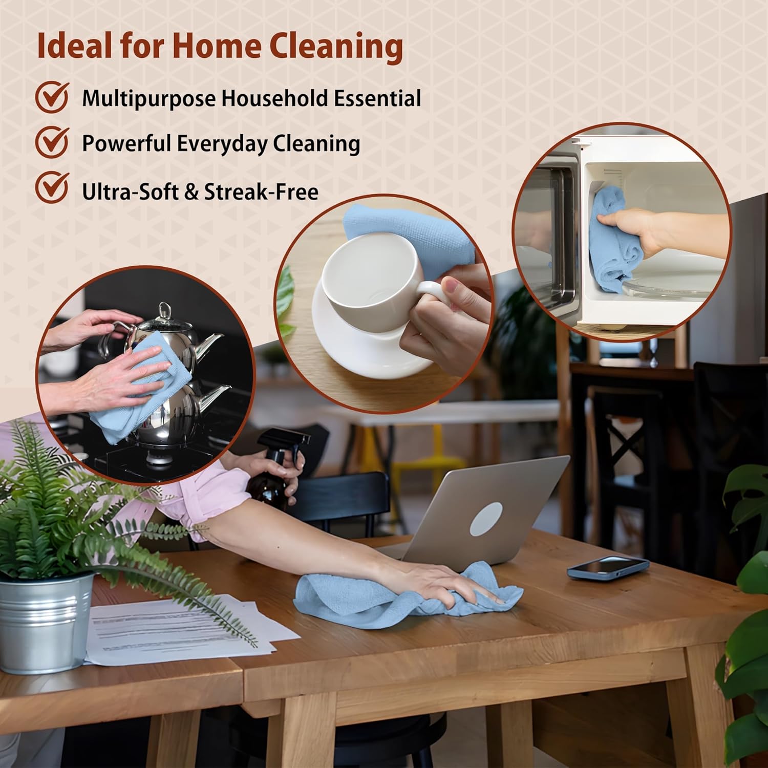 • Microfiber cleaning cloths 11.81x11.81 Inches; provide a soft texture gentle, ideal for cleaning, kitchens, garages, workshops, glass, mirrors, windows and stainless steel without leaving residue.