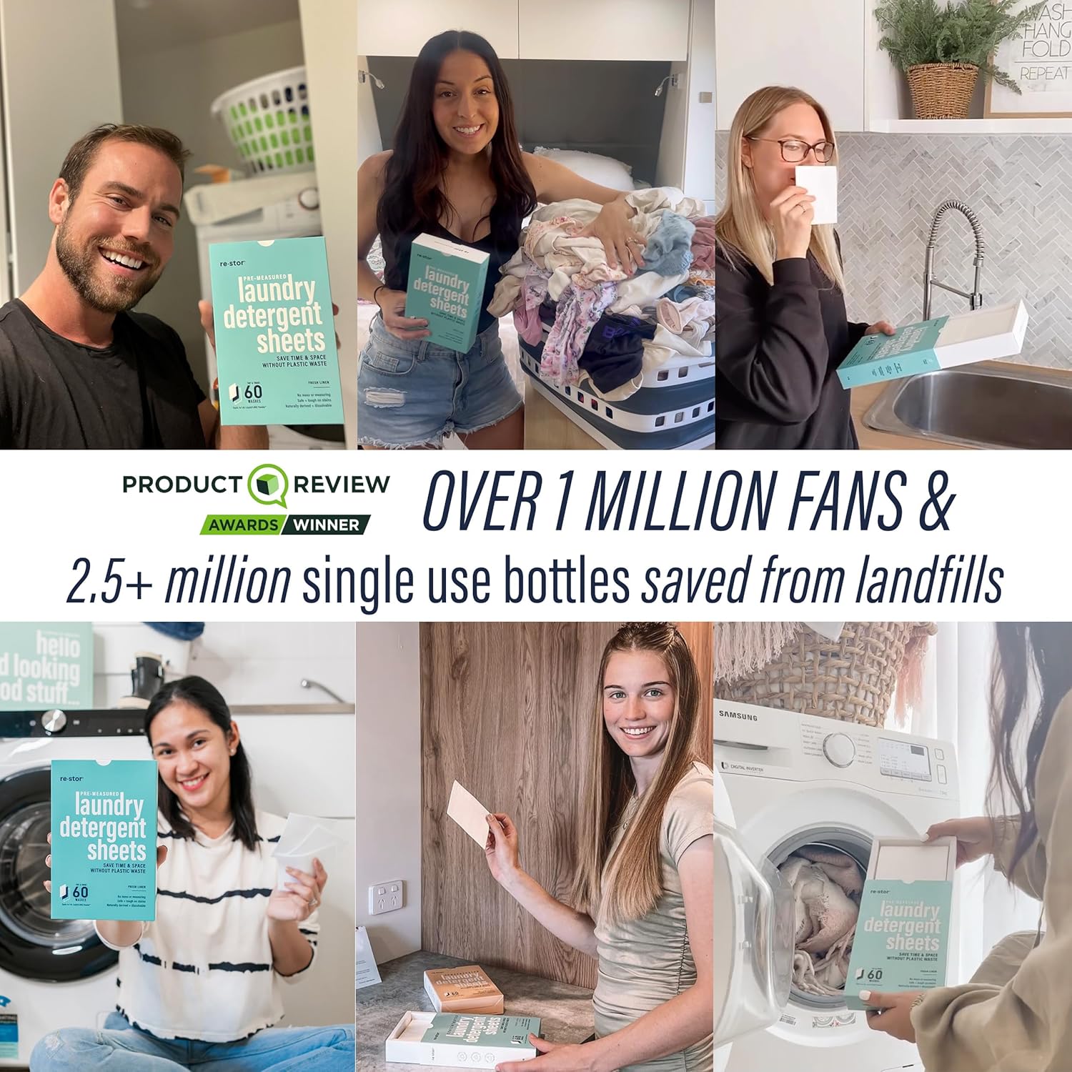- INDEPENDENTLY TESTED TO FIGHT STAINS: Enhance your laundry routine with Restor Laundry Detergent Sheets that have been independently tested to remove common household stains better than the leading Laundry Sheet brand. Each ultra-concentrated, dissolvable sheet tackles stains, odors, and buildup with 94% naturally derived ingredients, delivering a powerful clean, without compromise.