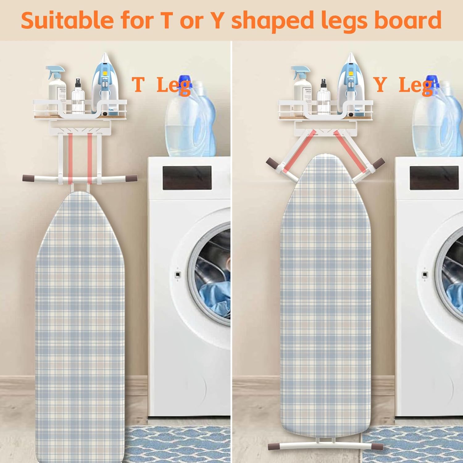 - ADJUSTABLE T&Y SHAPED LEG BOARDS: Paroto laundry room organization ironing board hanger measure 12.4'' x 6.3'' x 2.9'' with 2 hooks under the basket at a height of 6''. Holds up to 30 lbs. Two adjustable long metal hooks for T&Y style leg boards.Laundry accessories for laundry room, farmhouse bathroom decor.