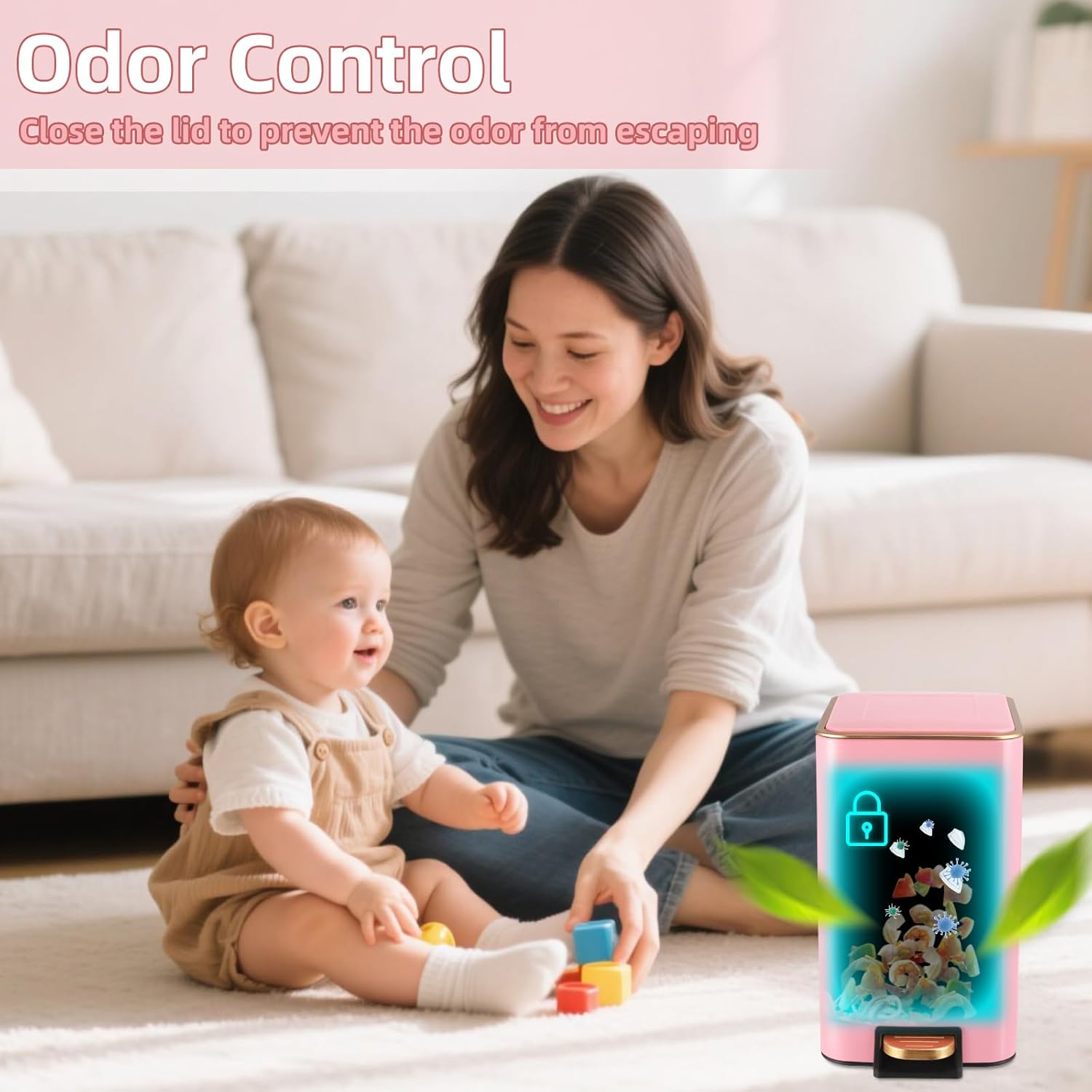 - [Sturdy Steel Pedal]: Upgrade foot pedal of the bathroom trash can combines stainless steel tread with plastic material, making a lighter and more comfortable pedaling experience.Engineered to last over 150,000 steps, allowing you to step more than 20 steps a day for 20 years