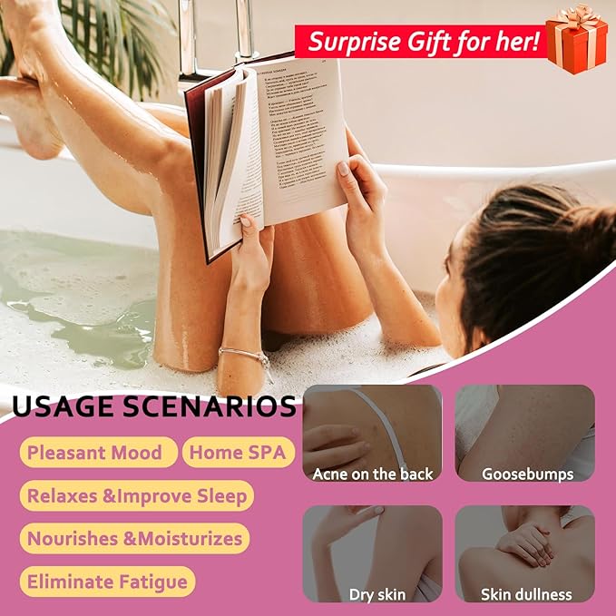 - 【12 aromatherapy scents for a home spa】 Including milk, peach, rose, orange, ocean, lavender, vanilla and other scents, enjoy the fragrance for a long time. Choose your favorite scent and relax your body and mind - there will be no artificial colors to stain your skin or bathtub.