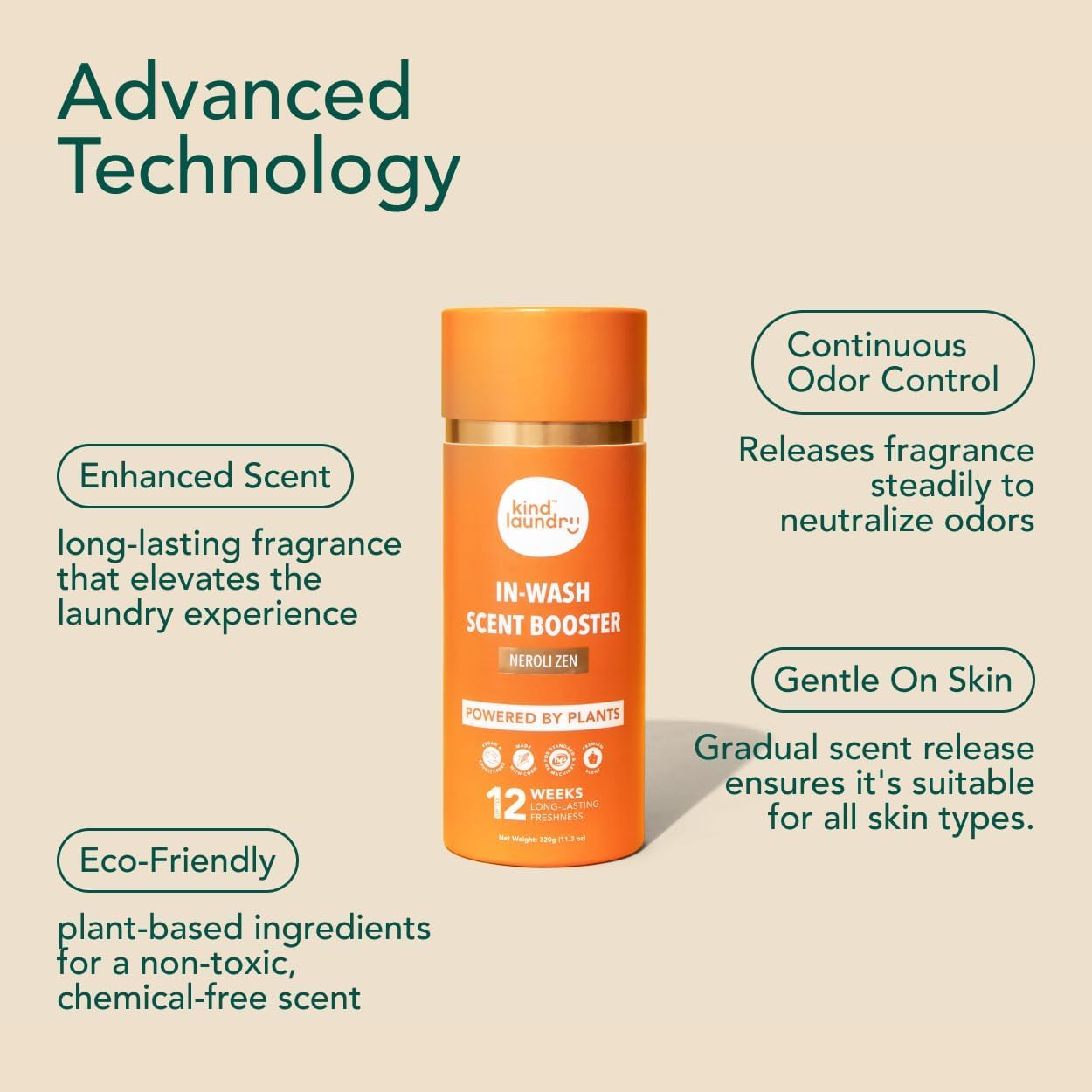Kind Laundry In Wash Scent Booster Beads - Neroli Zen - 100% Plant Based - Natural Laundry Booster Beads & Smell Deodorizer - Environment Friendly Odor Eliminator for Clothes (320 grams)