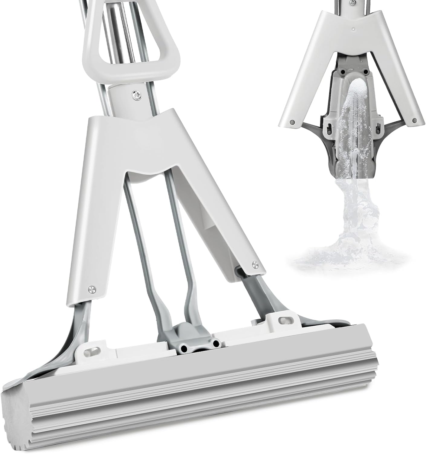 - ECO-FRIENDLY AND DURABLE MATERIALS: Made with stainless steel and eco-friendly materials, the mop features a comfortable grip and smooth operation. The easy-to-use snap-on installation allows you to replace the sponge head without tools, making it convenient and quick.