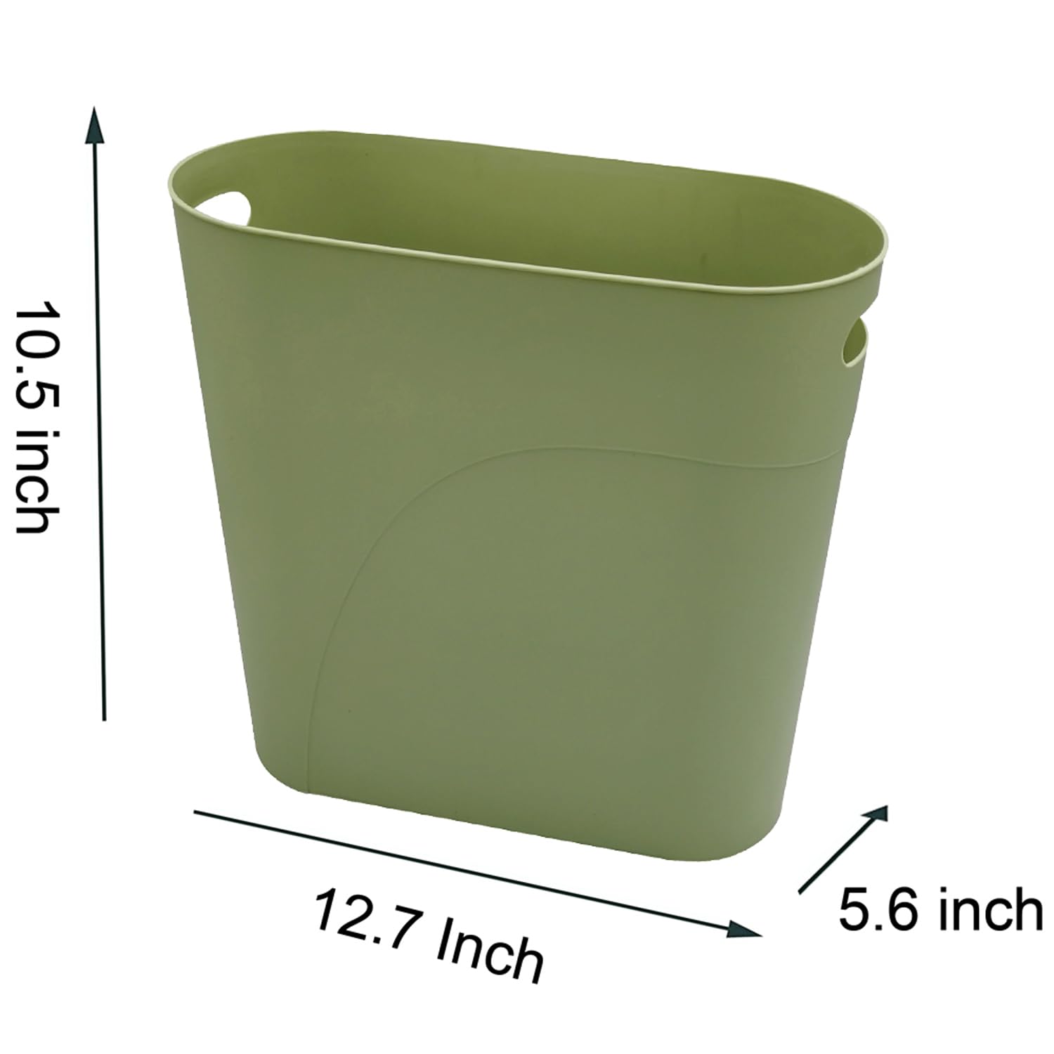 - Space Efficient Design: Small trash can with oval slim narrow design, you can easier place it to the small space or to the edge and take full use of the space. Size: Length:12.7, Width:5.6, High:10.5 inch, 3.2 gallon / 12L capacity.