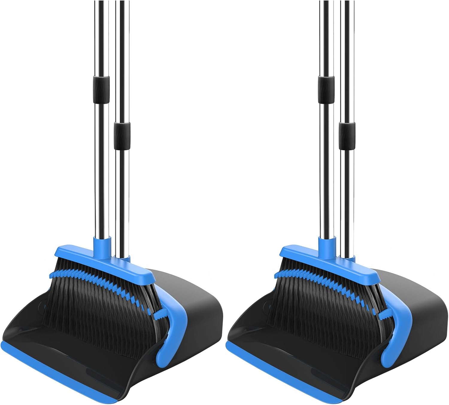 NACENA Broom and Dustpan Set, 52-in Long Adjustable Handle Broom Dustpan Combo with Dustpan Teeth to Automatically Clean Hair Suitable for Home Kitchen Office Hall Floor (Black&Blue), 2 Pack