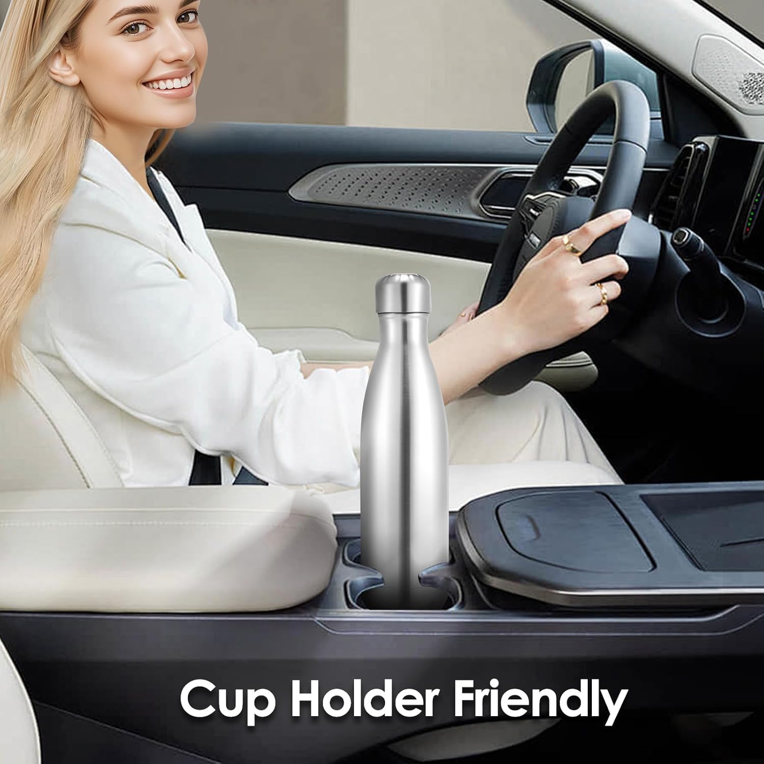 - 《Portable Size and Wide Use》17oz insulated water bottle is the good size for kids and adults.With a portable lid and light weight so you can carry it anywhere with ease.The Convenient bottle is the good choice for the bike or car cup holder,side pockets of backpack,gym,school,work,camping hiking biking beach trips,picnics and any other indoor or outdoor activity.