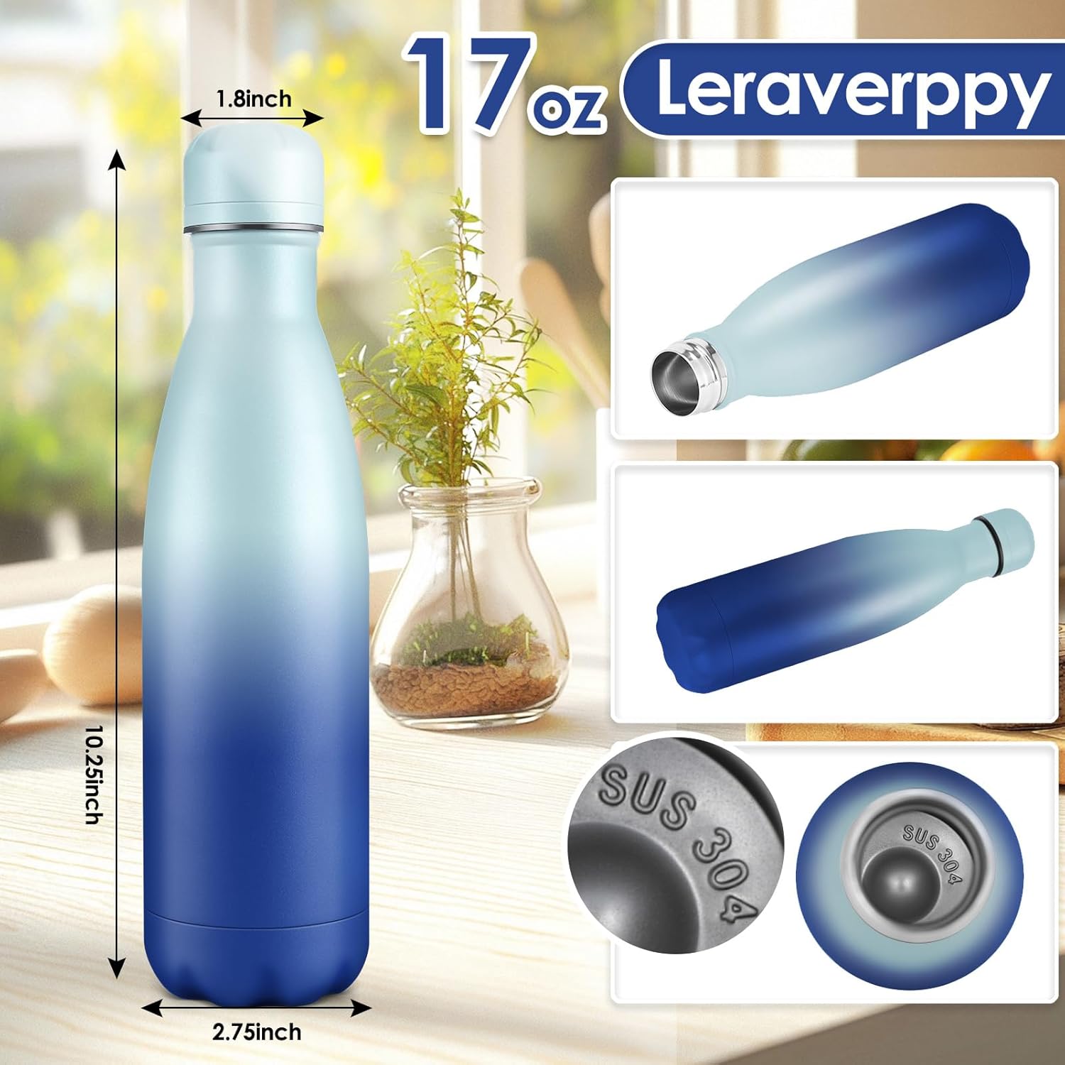 - 《Food-Grade 18/8 Stainless Steel Liner》Our water bottle is made of 18/8 food-grade known as 304 stainless steel.BPA Free,Non-toxic,No metallic taste,safe and healthy for all your water needs.Moms can trust our 304 stainless steel water bottles — designed to keep your little one’s drinks safe and healthy.Drink in the joy of every drop in your healthy life.