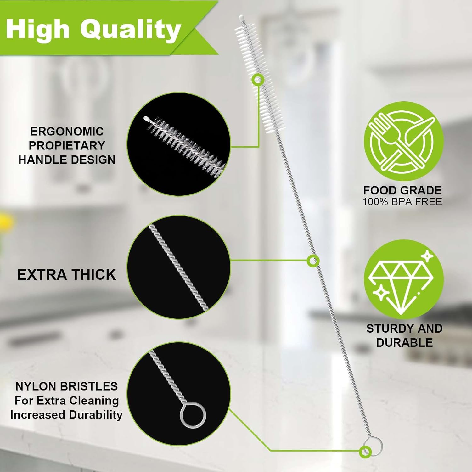 - Professional Straw Cleaner: This straw brush cleaner set includes 8 premium brushes designed to effectively clean your reusable straws. The long straw cleaner brush (7.8 inches) is perfect for reaching deep into tumbler straws and narrow pipes. Made with stainless steel handles and nylon bristles, these straw brushes are durable and flexible for any cleaning task. Whether you're cleaning metal, glass, or plastic straws, this straw cleaners has you covered. Say goodbye to stubborn residue with this efficient cleaning brush for straws.