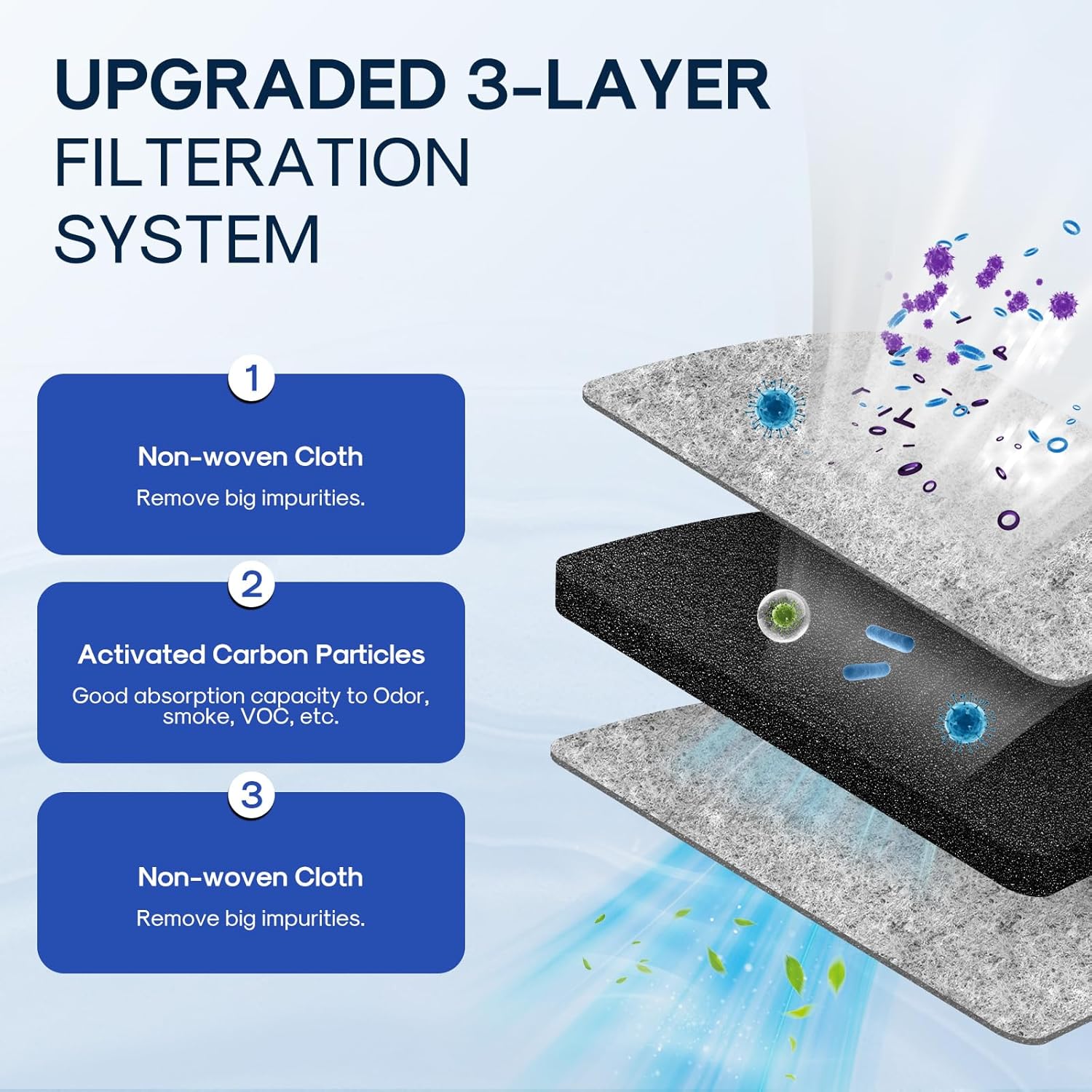 - Activated Carbon Air Filter - The refrigerator air filter is equipped with three layers of high-quality carbon. It can remove larger impurities, purify water quality, and has a good absorption capacity for odors, smoke, etc. It can effectively eliminate unpleasant smells and keep the air in your refrigerator fresh.