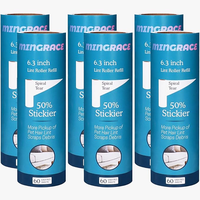 6.3 inch Large Lint Roller Refills Compatible with All Standard 6.3'' Wide Lint Rollers for Pet Hair, 50% Stickier, 60 Sheets per Refill, Pack of 6 Refills, 360 Sheets Total